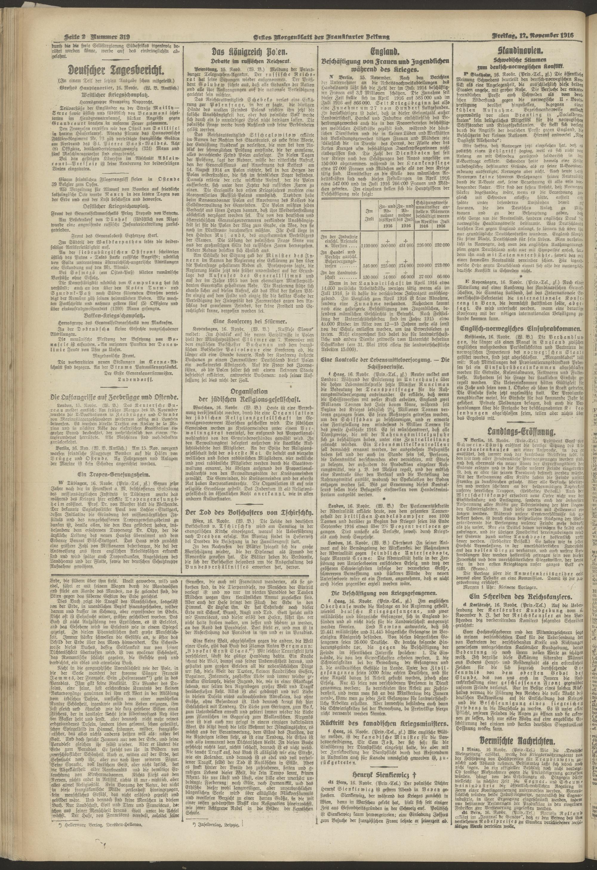 17.11.1916 = Nr. 319. Erstes Morgenblatt