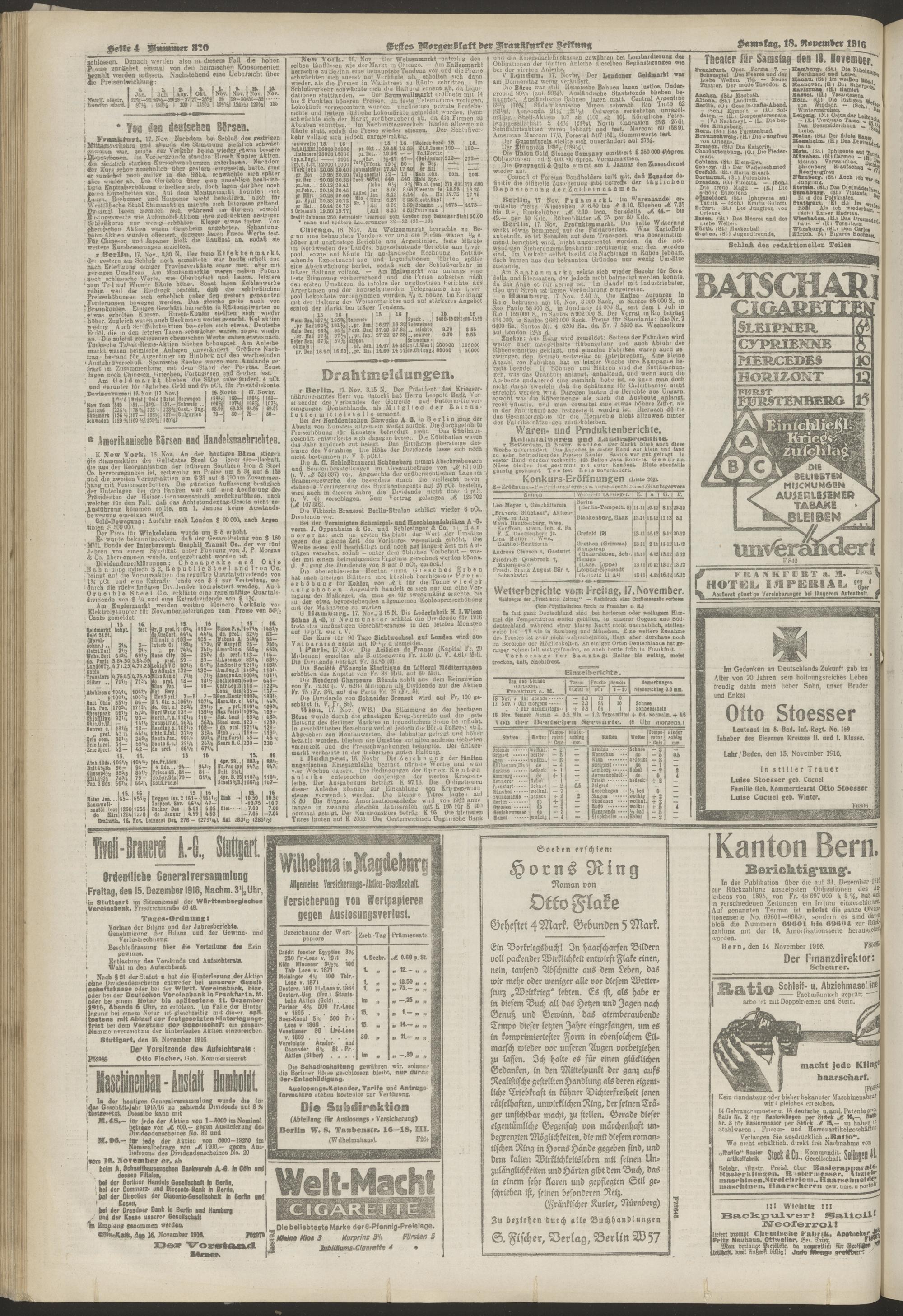 18.11.1916 = Nr. 320. Erstes Morgenblatt