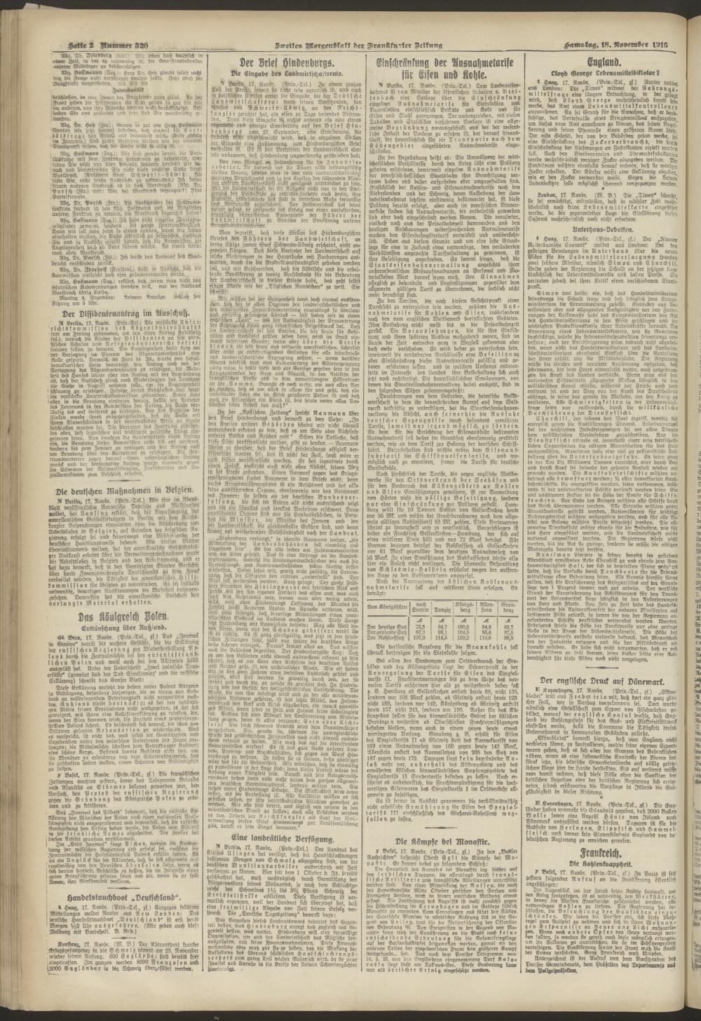 18.11.1916 = Nr. 320. Zweites Morgenblatt