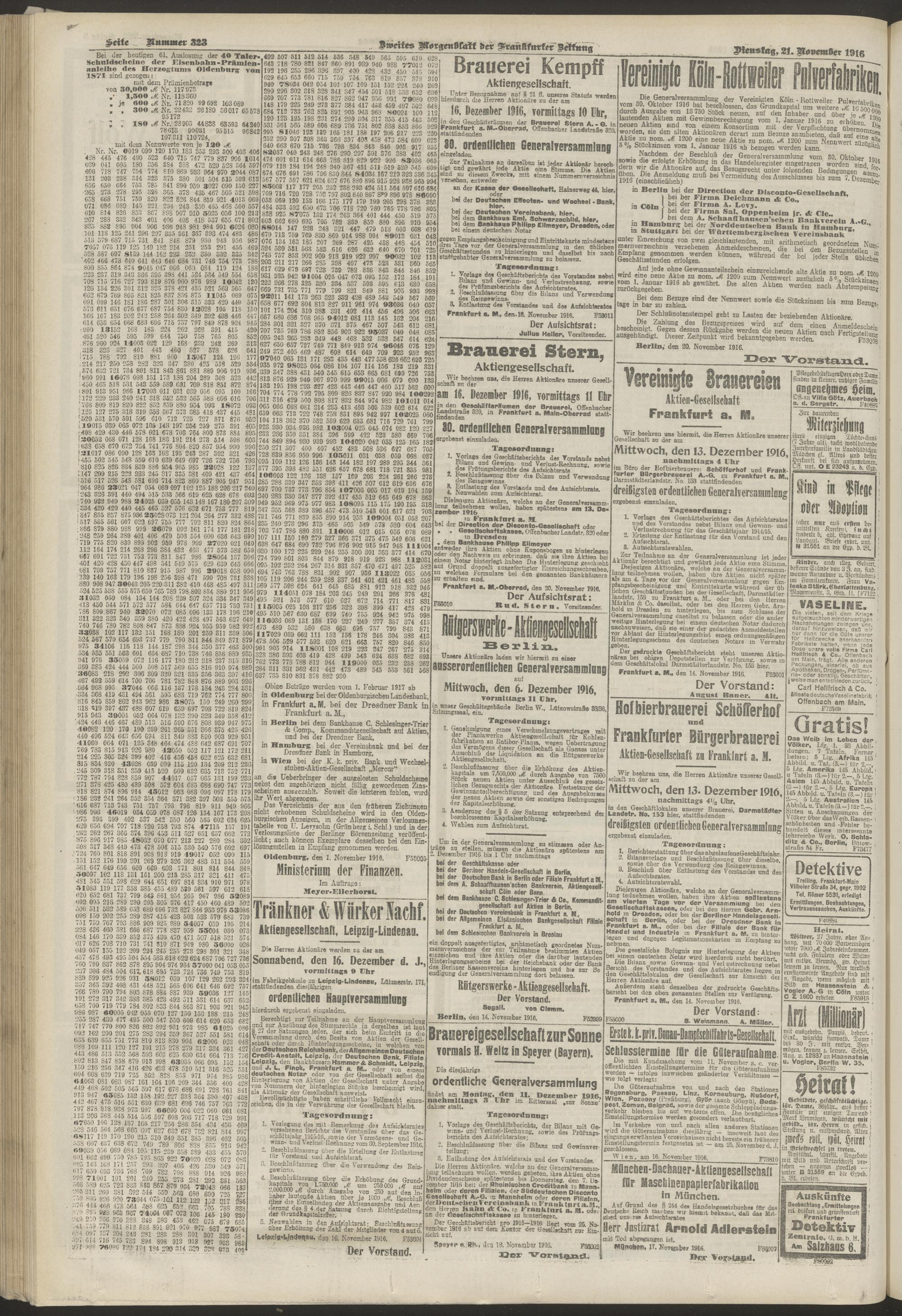 21.11.1916 = Nr. 323. Zweites Morgenblatt