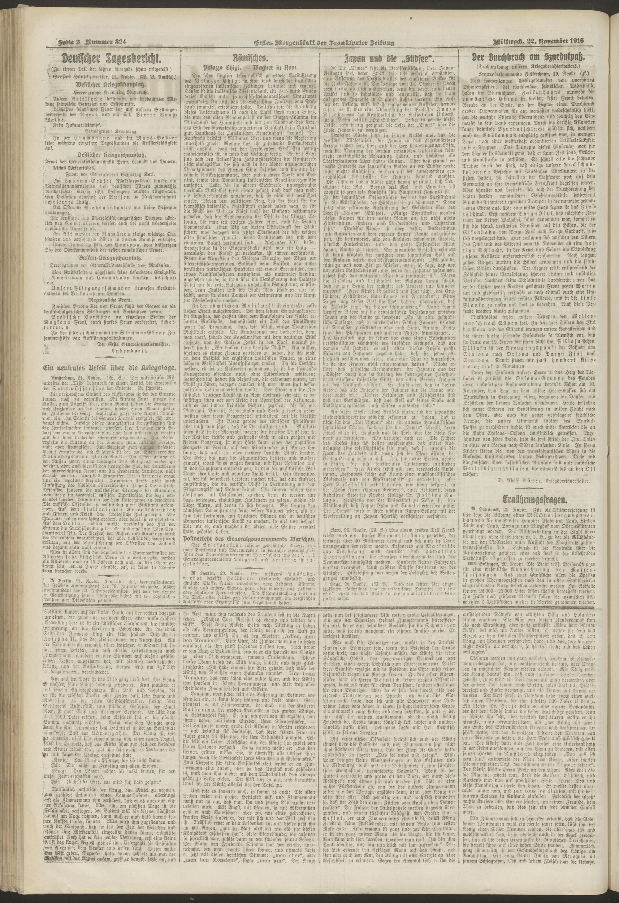 22.11.1916 = Nr. 324. Erstes Morgenblatt