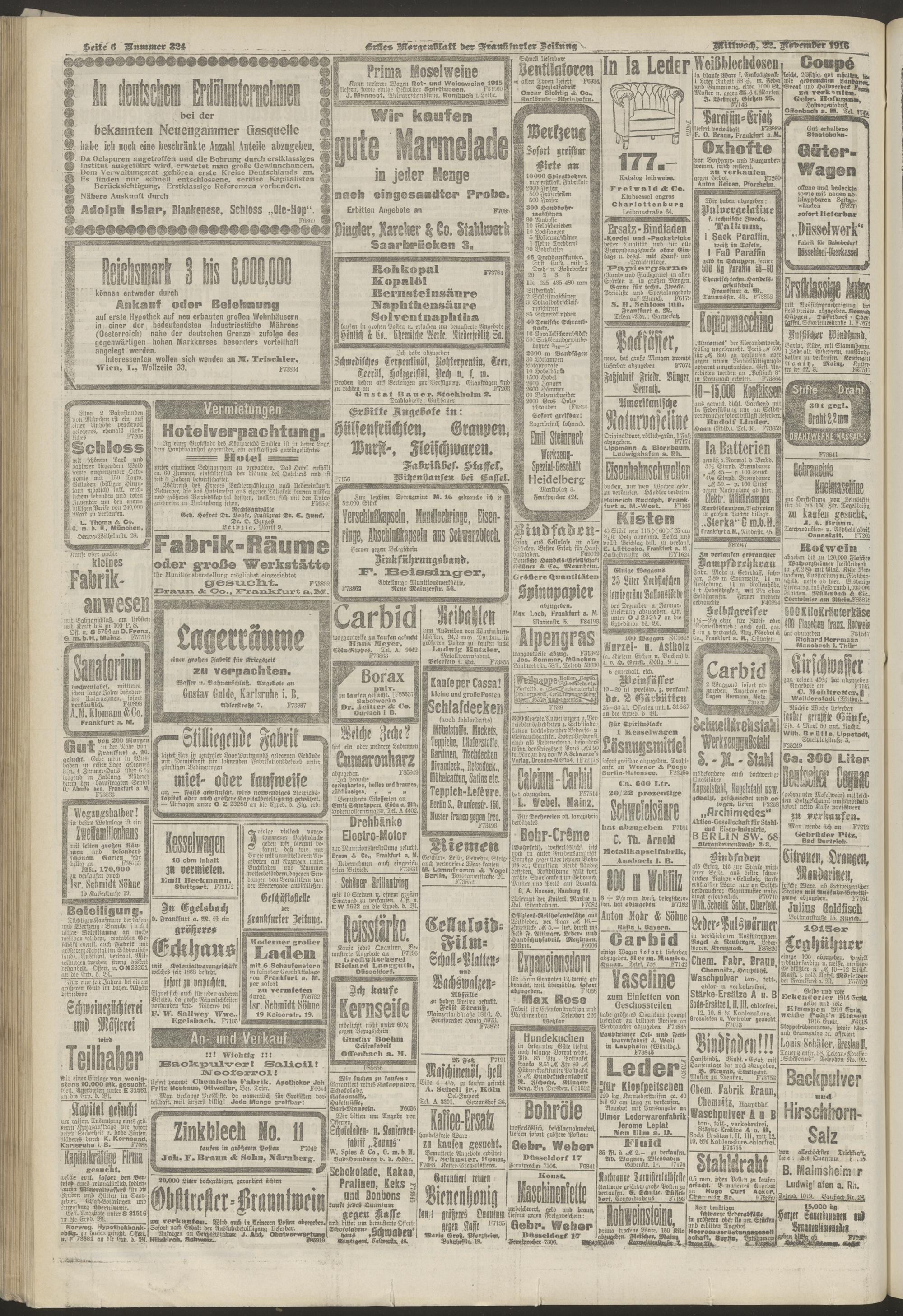 22.11.1916 = Nr. 324. Erstes Morgenblatt