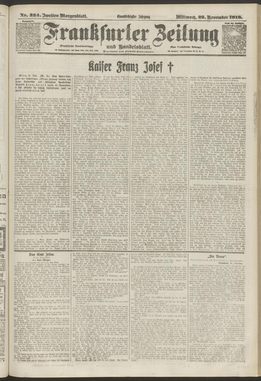 22.11.1916 = Nr. 324. Zweites Morgenblatt