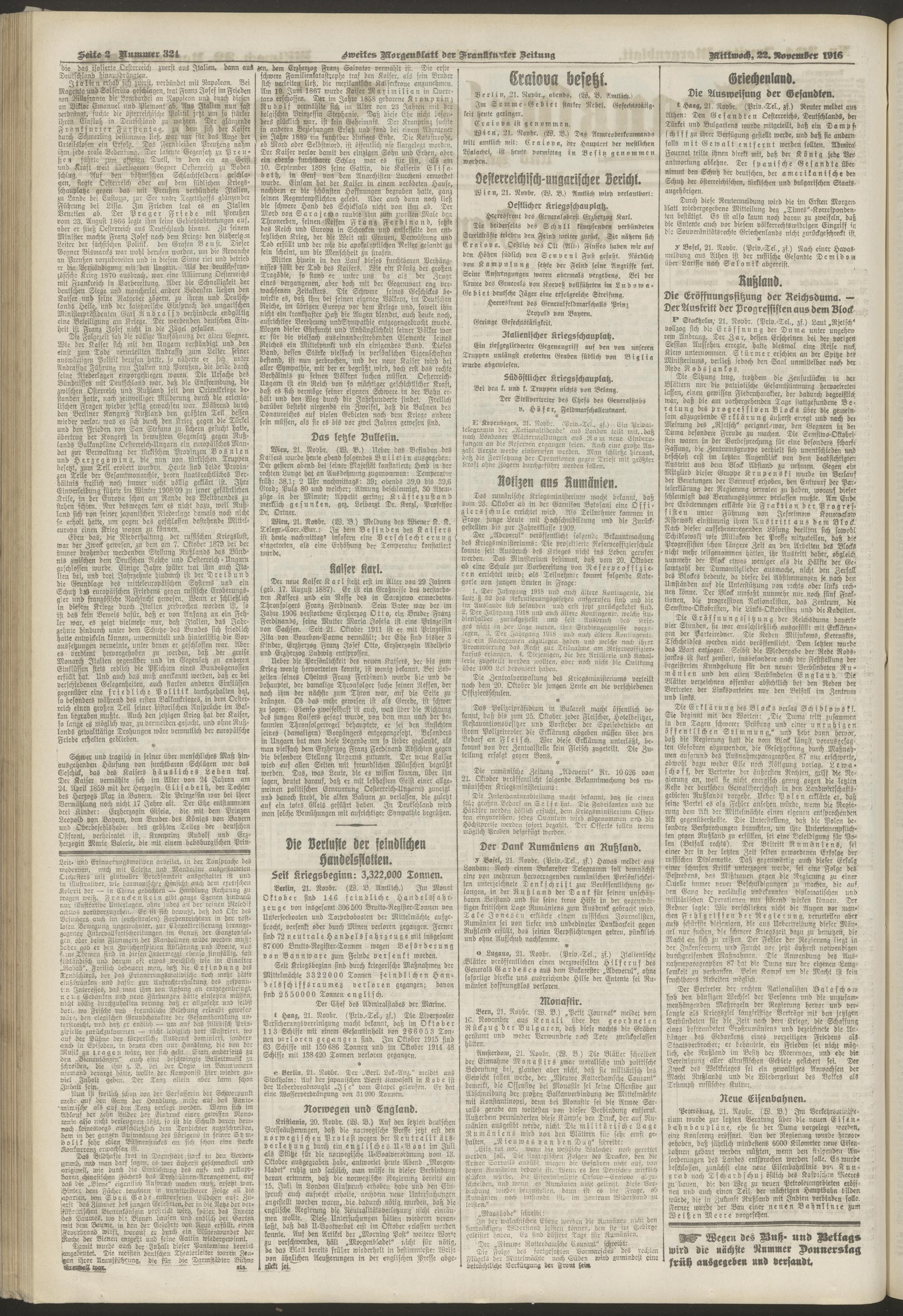 22.11.1916 = Nr. 324. Zweites Morgenblatt