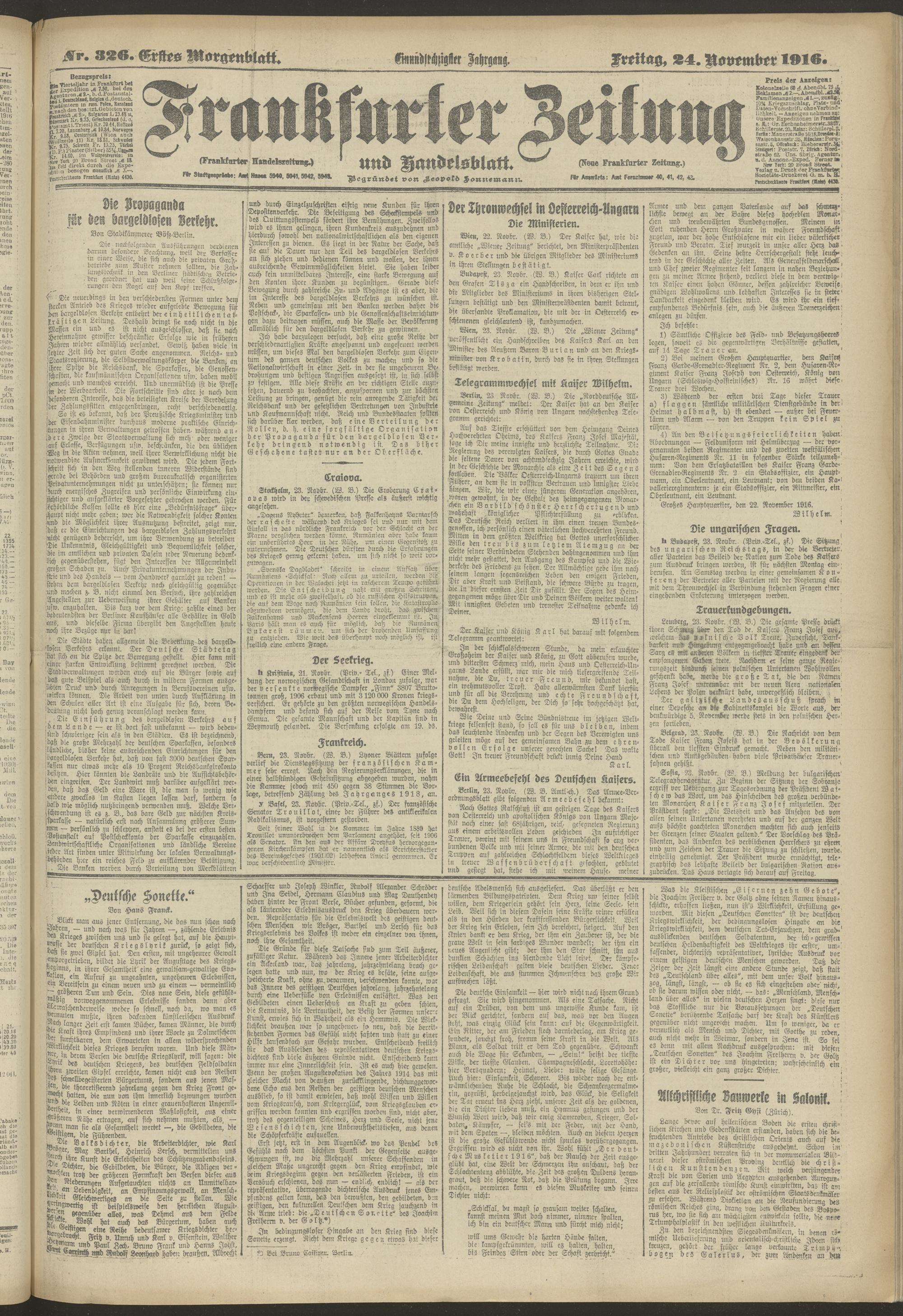 24.11.1916 = Nr. 326. Erstes Morgenblatt