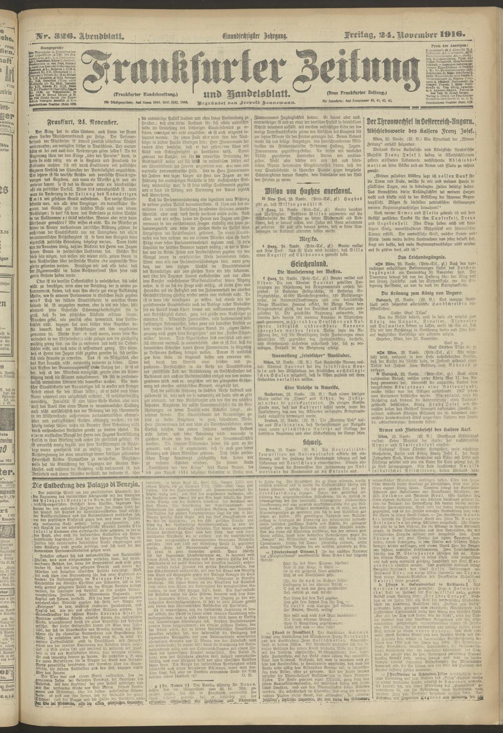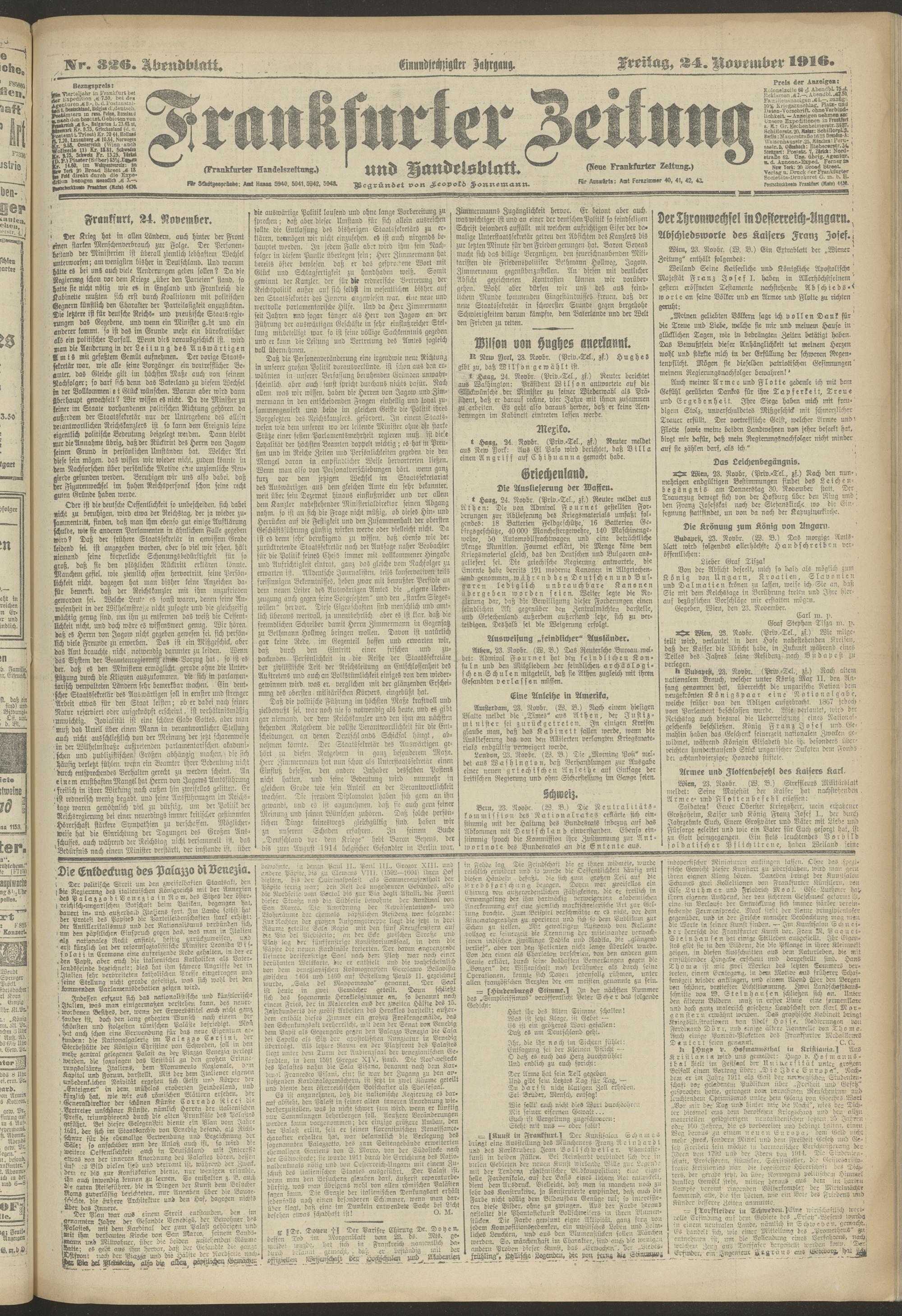 24.11.1916 = Nr. 326. Abendblatt