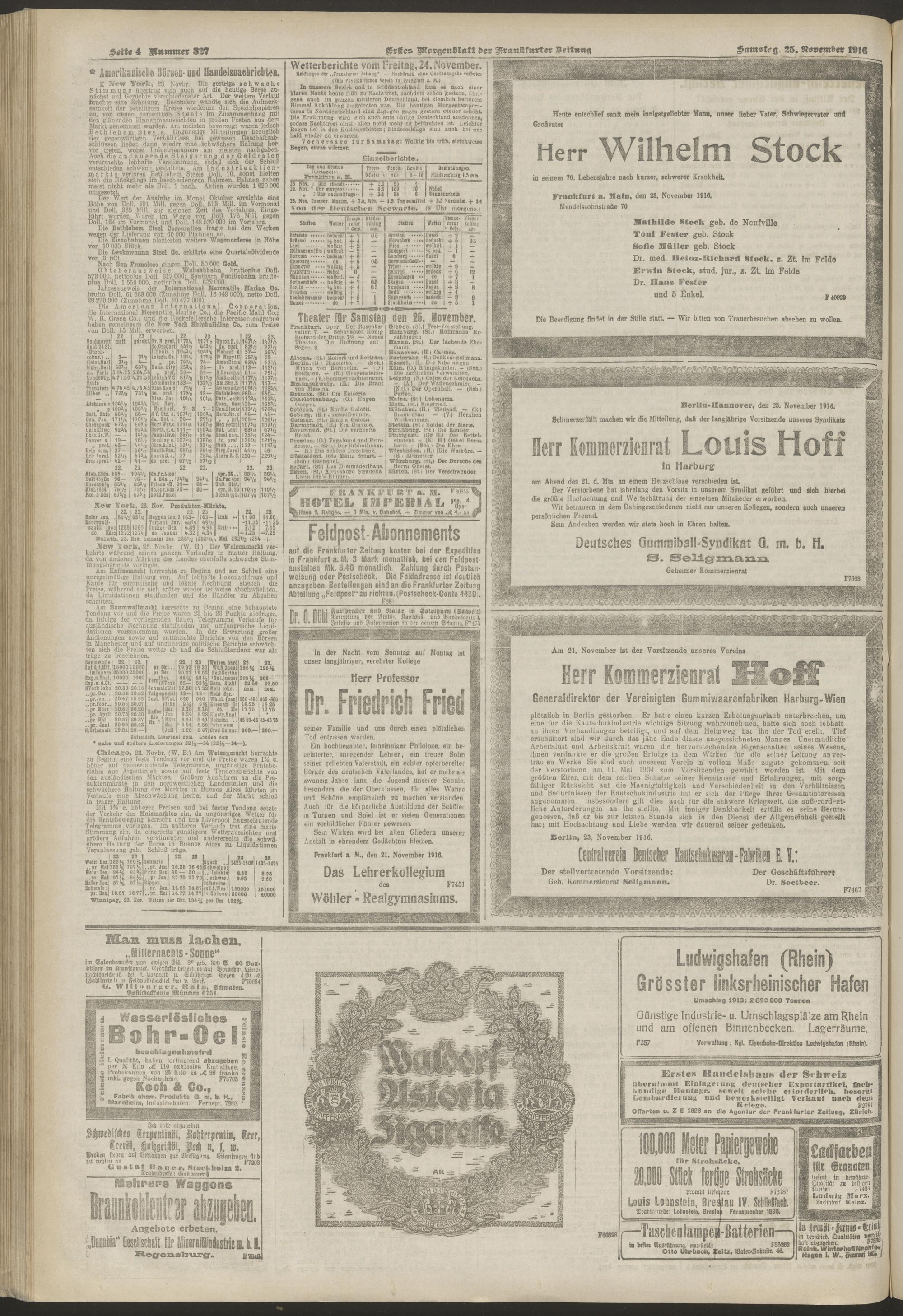 25.11.1916 = Nr. 327. Erstes Morgenblatt