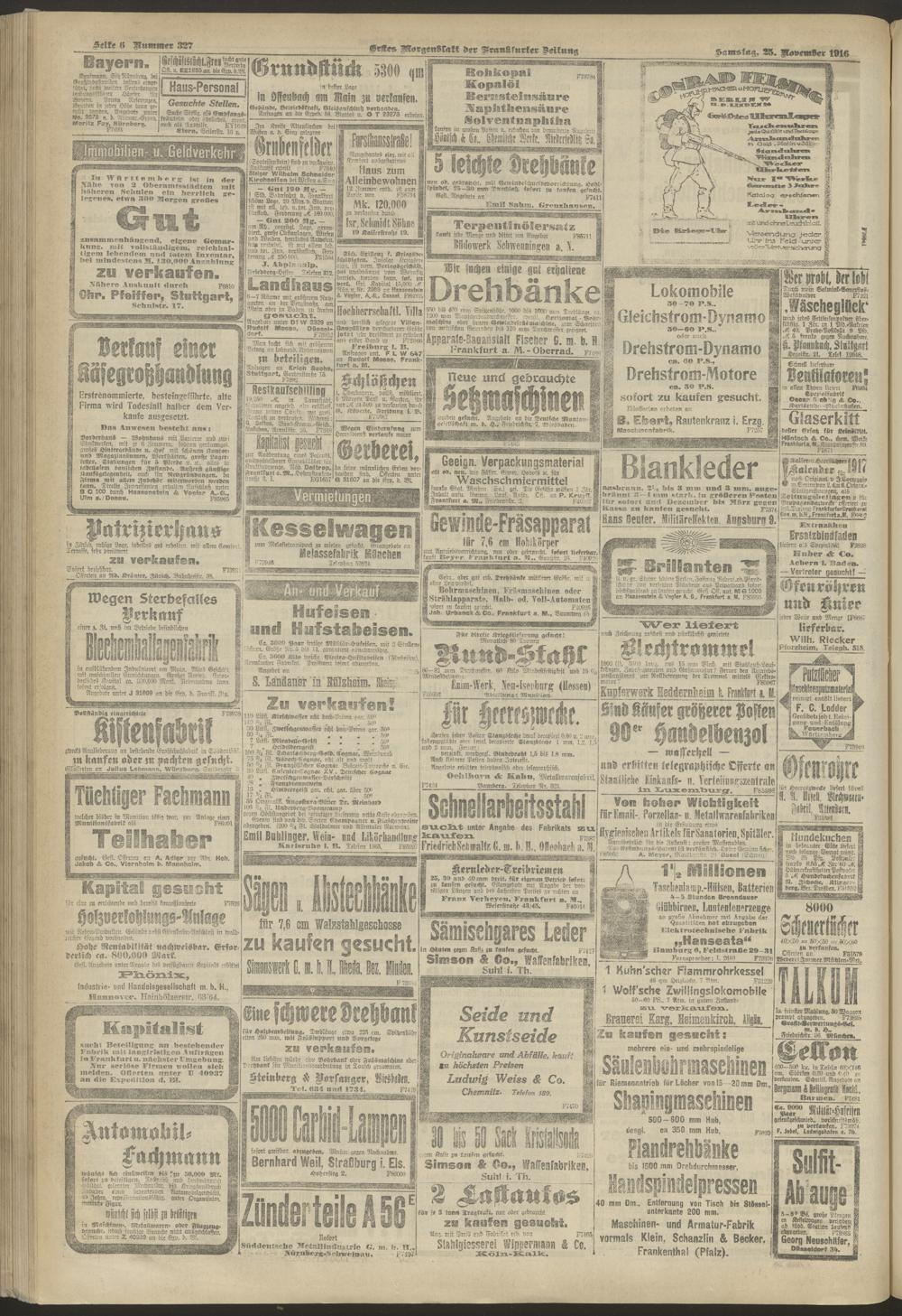 25.11.1916 = Nr. 327. Erstes Morgenblatt