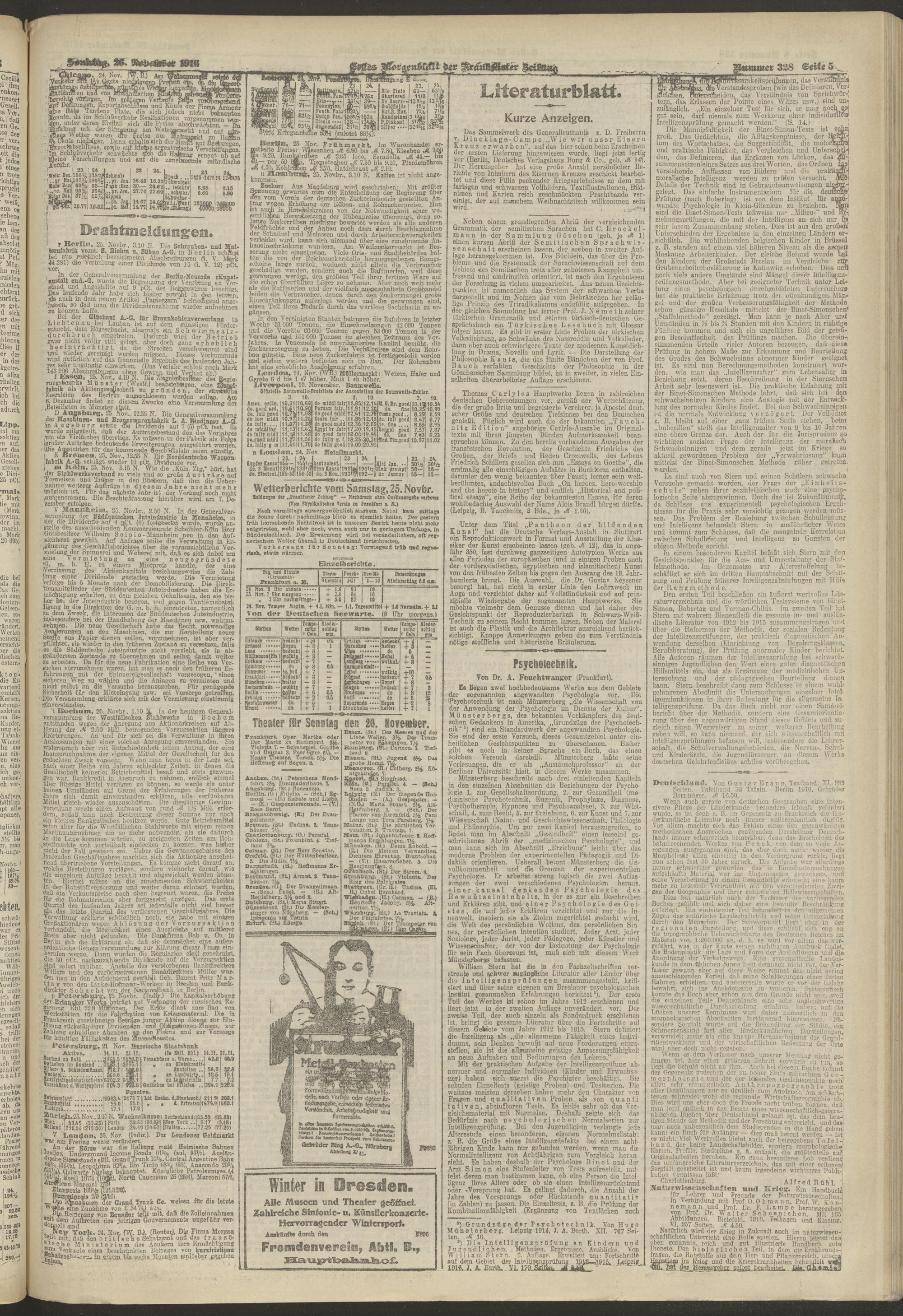 26.11.1916 = Nr. 328. Erstes Morgenblatt
