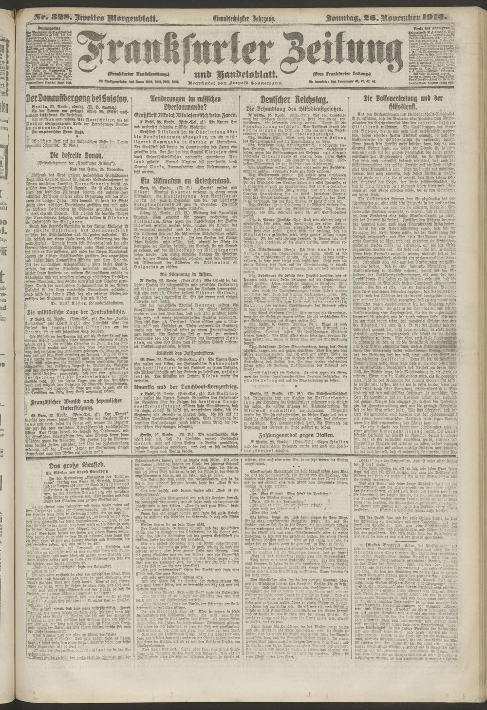 26.11.1916 = Nr. 328. Zweites Morgenblatt