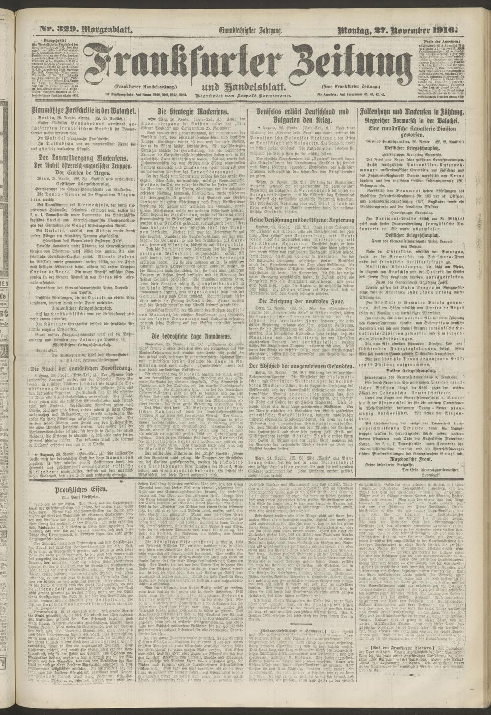 27.11.1916 = Nr. 329. Morgenblatt