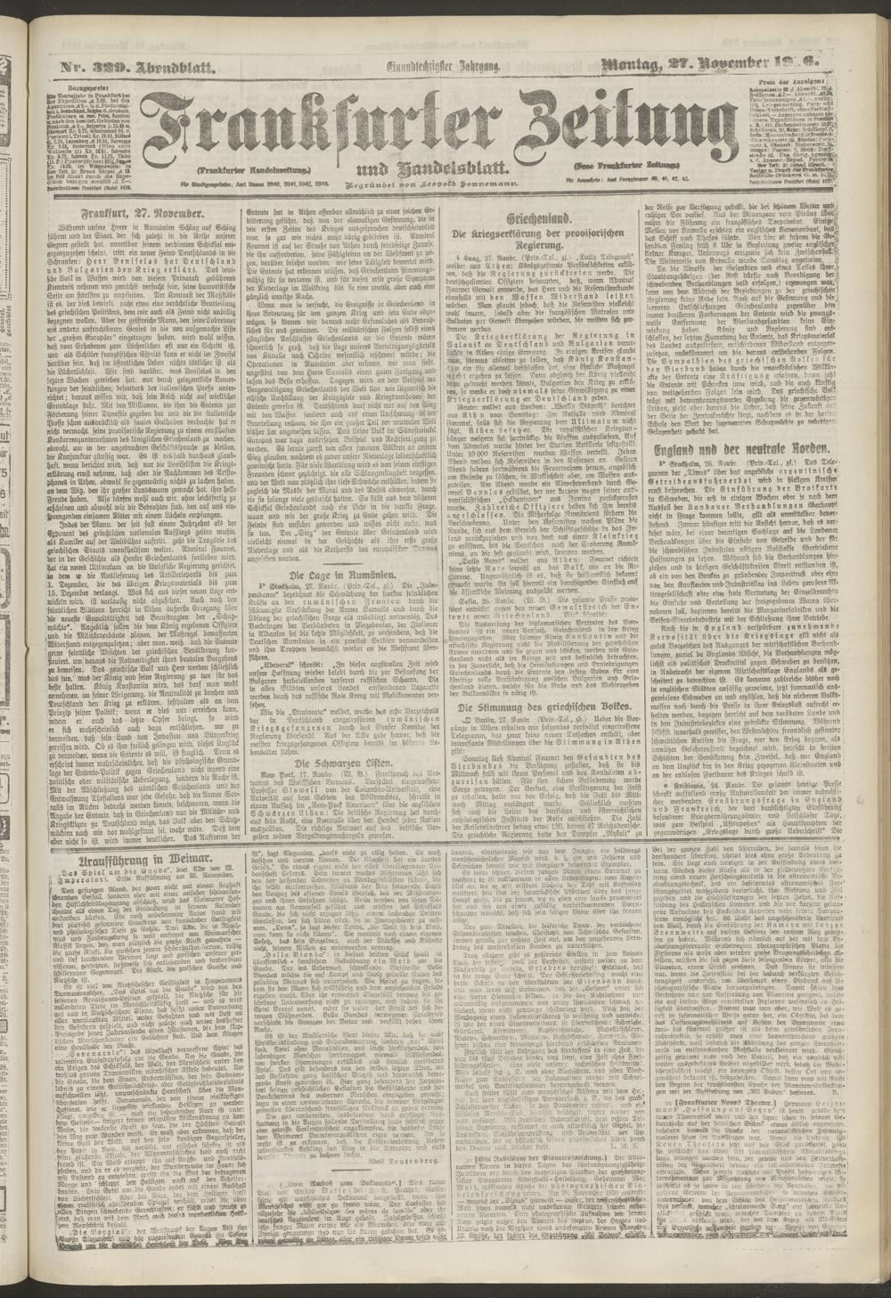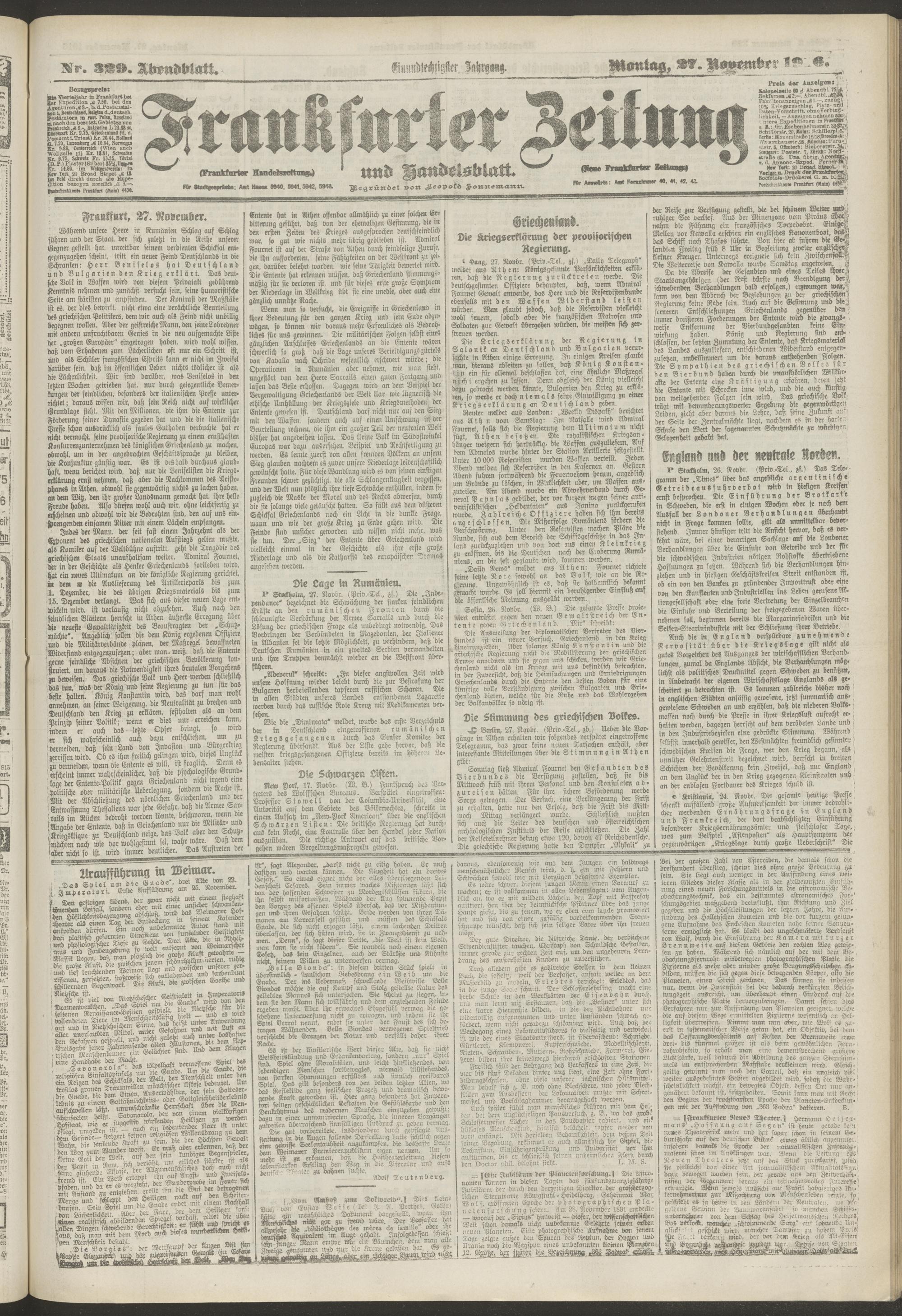 27.11.1916 = Nr. 329. Abendblatt