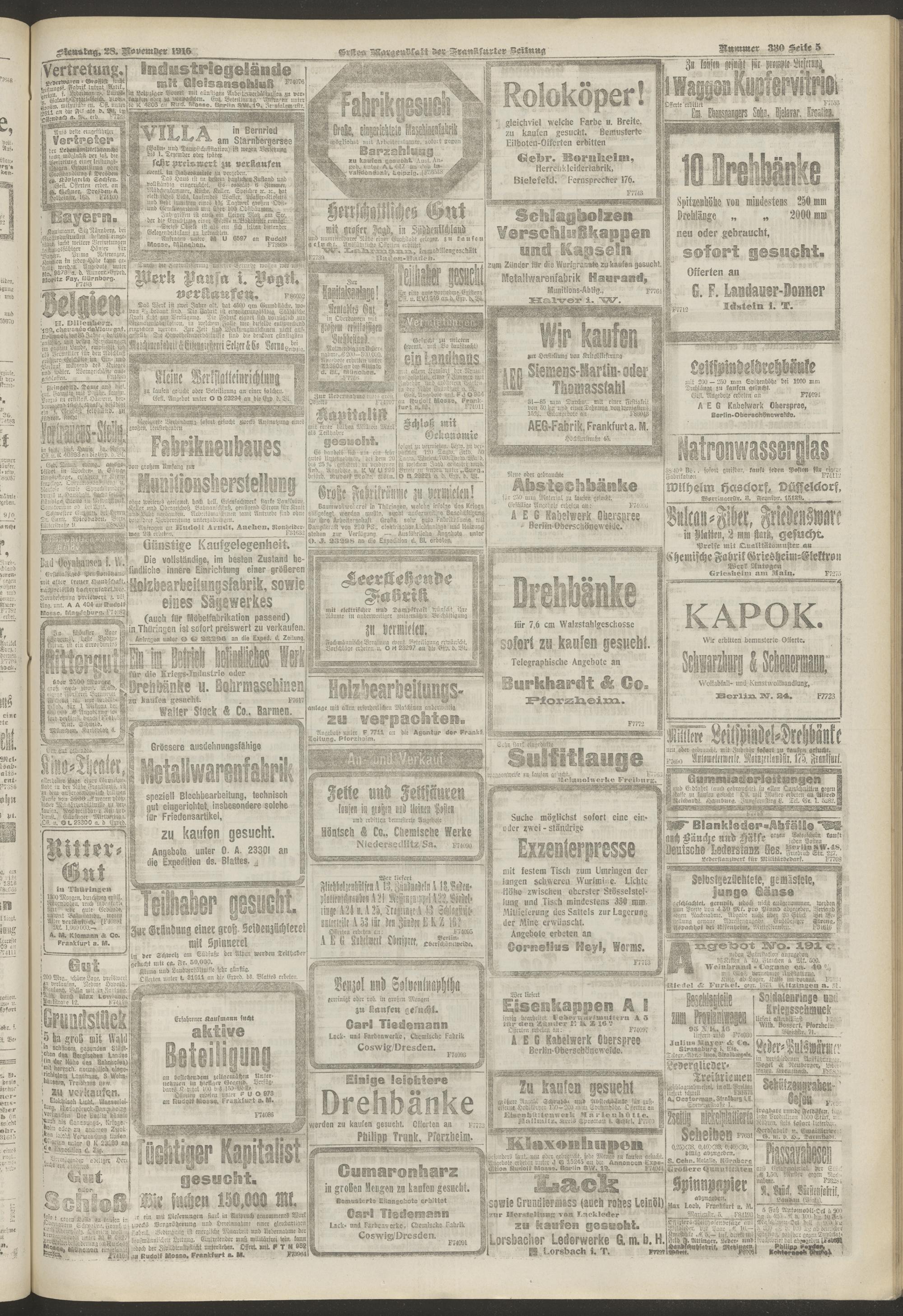28.11.1916 = Nr. 330. Erstes Morgenblatt
