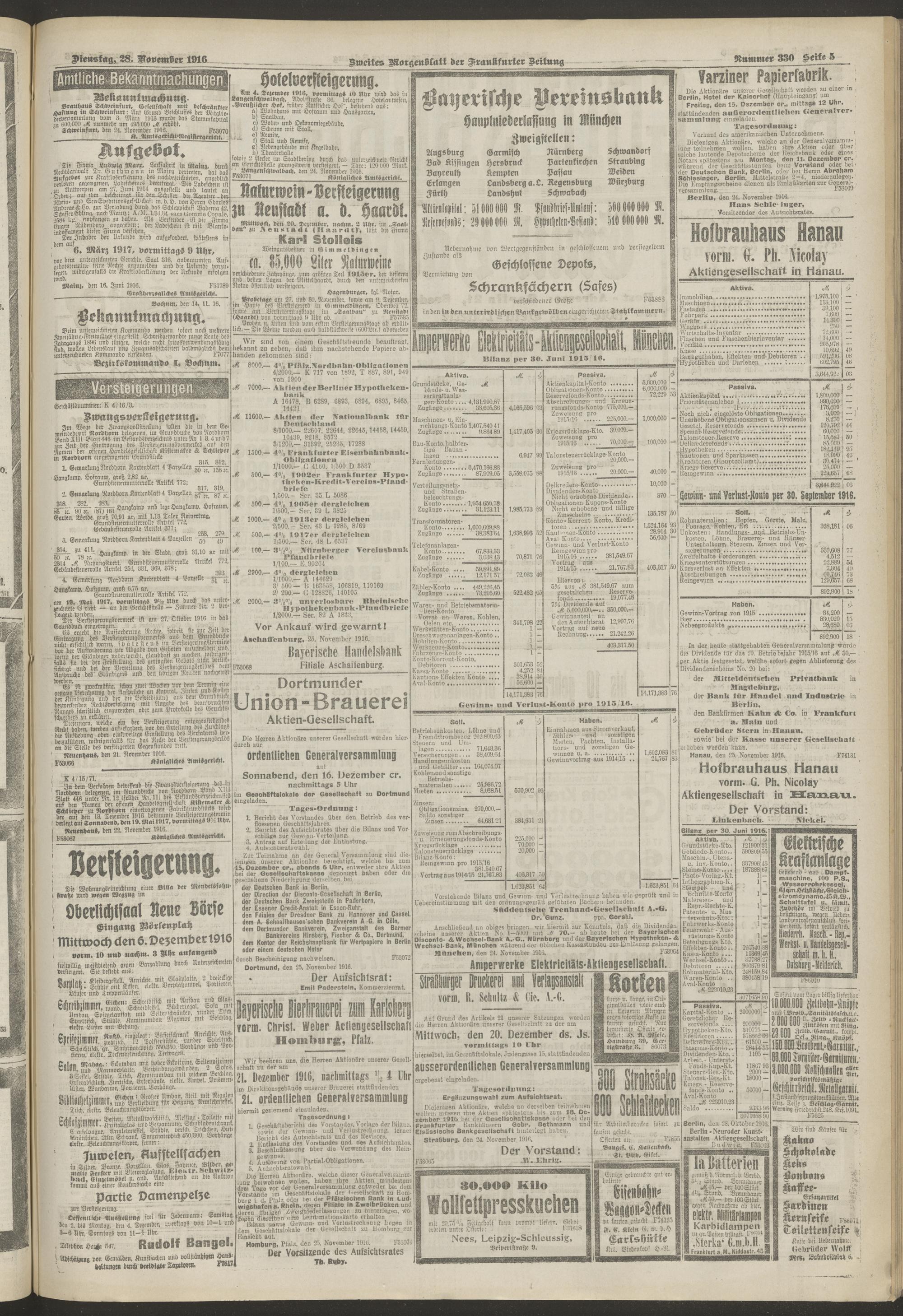 28.11.1916 = Nr. 330. Zweites Morgenblatt