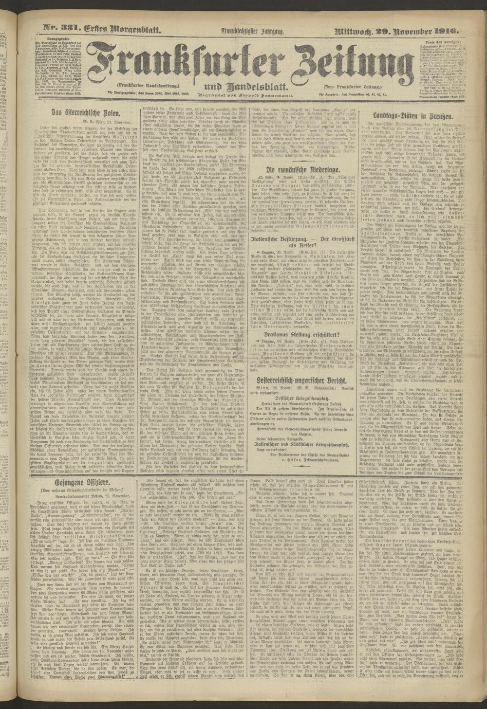 29.11.1916 = Nr. 331. Erstes Morgenblatt