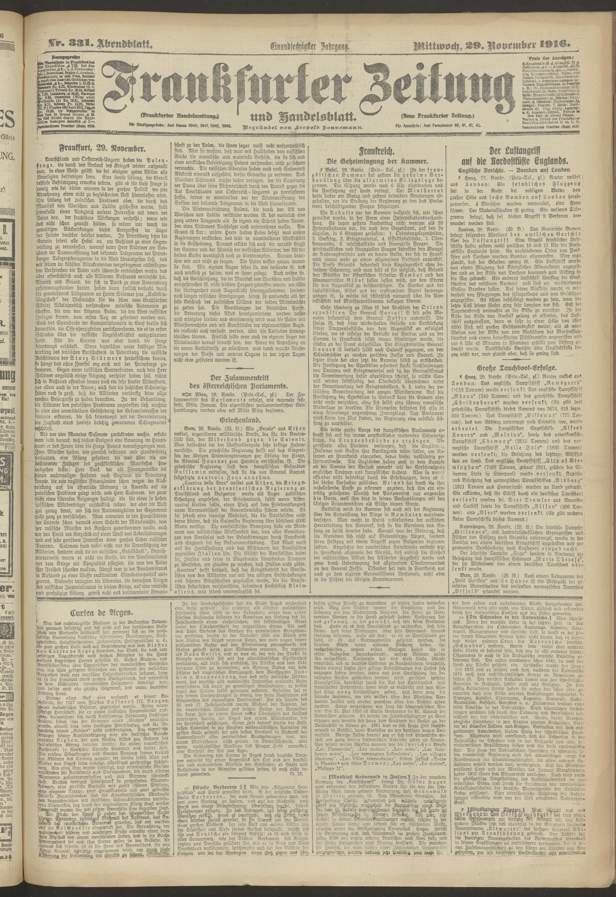 29.11.1916 = Nr. 331. Abendblatt