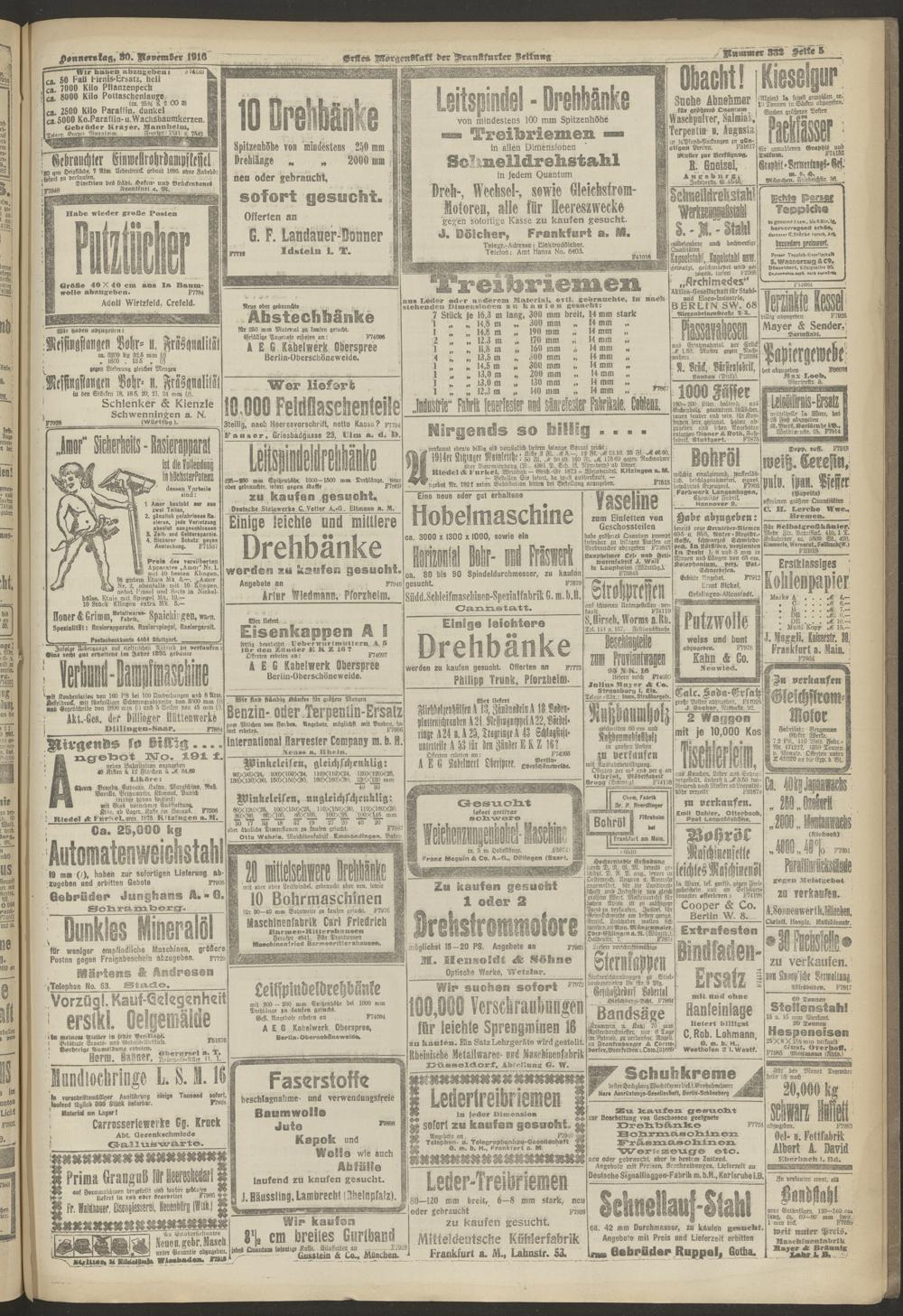 30.11.1916 = Nr. 332. Erstes Morgenblatt