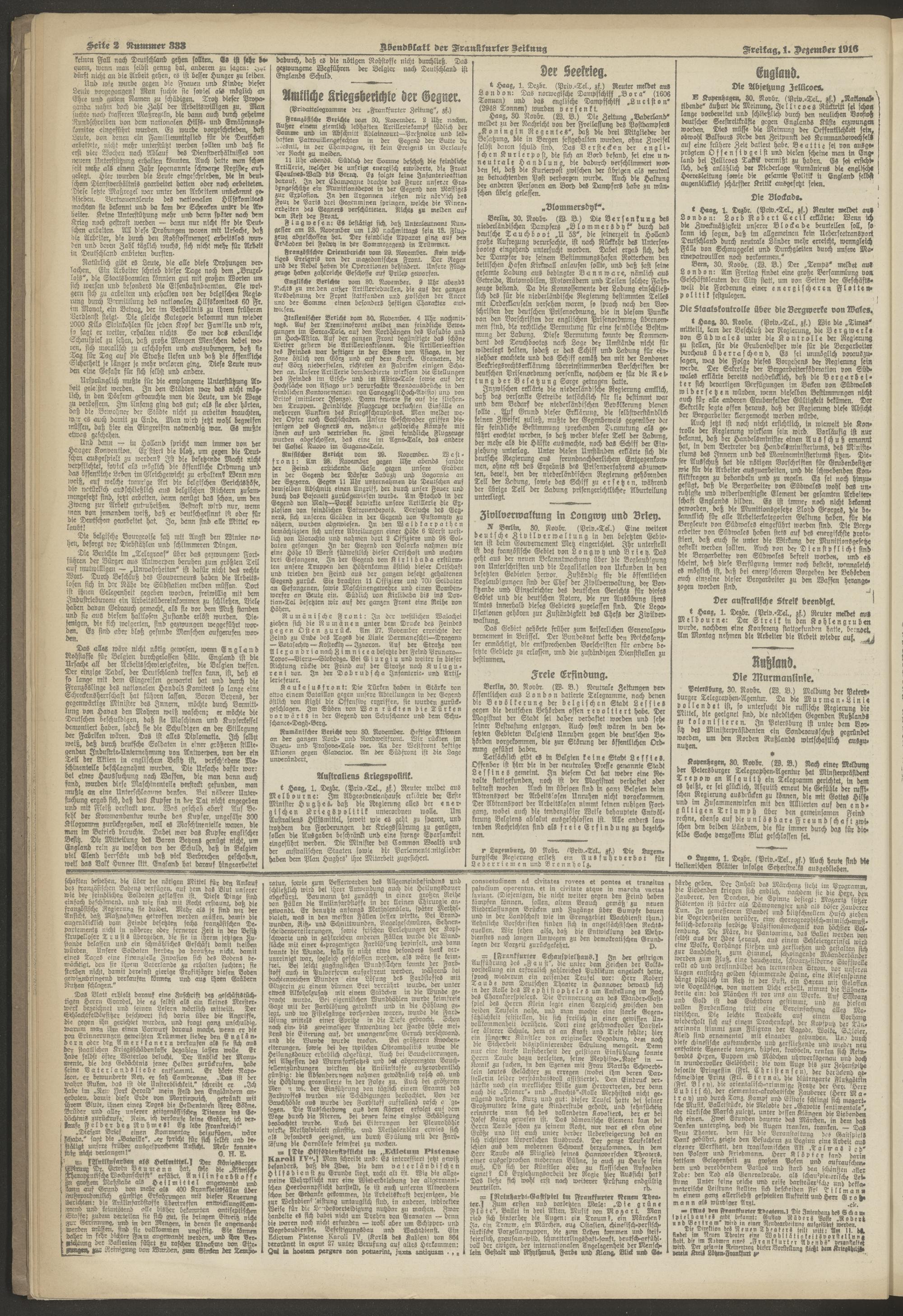 01.12.1916 = Nr. 333. Abendblatt