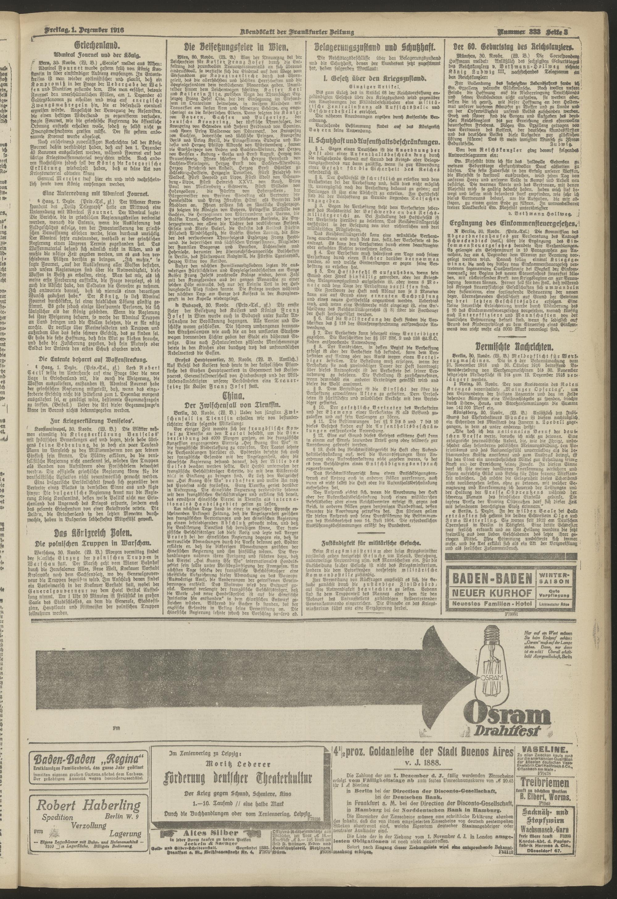 01.12.1916 = Nr. 333. Abendblatt