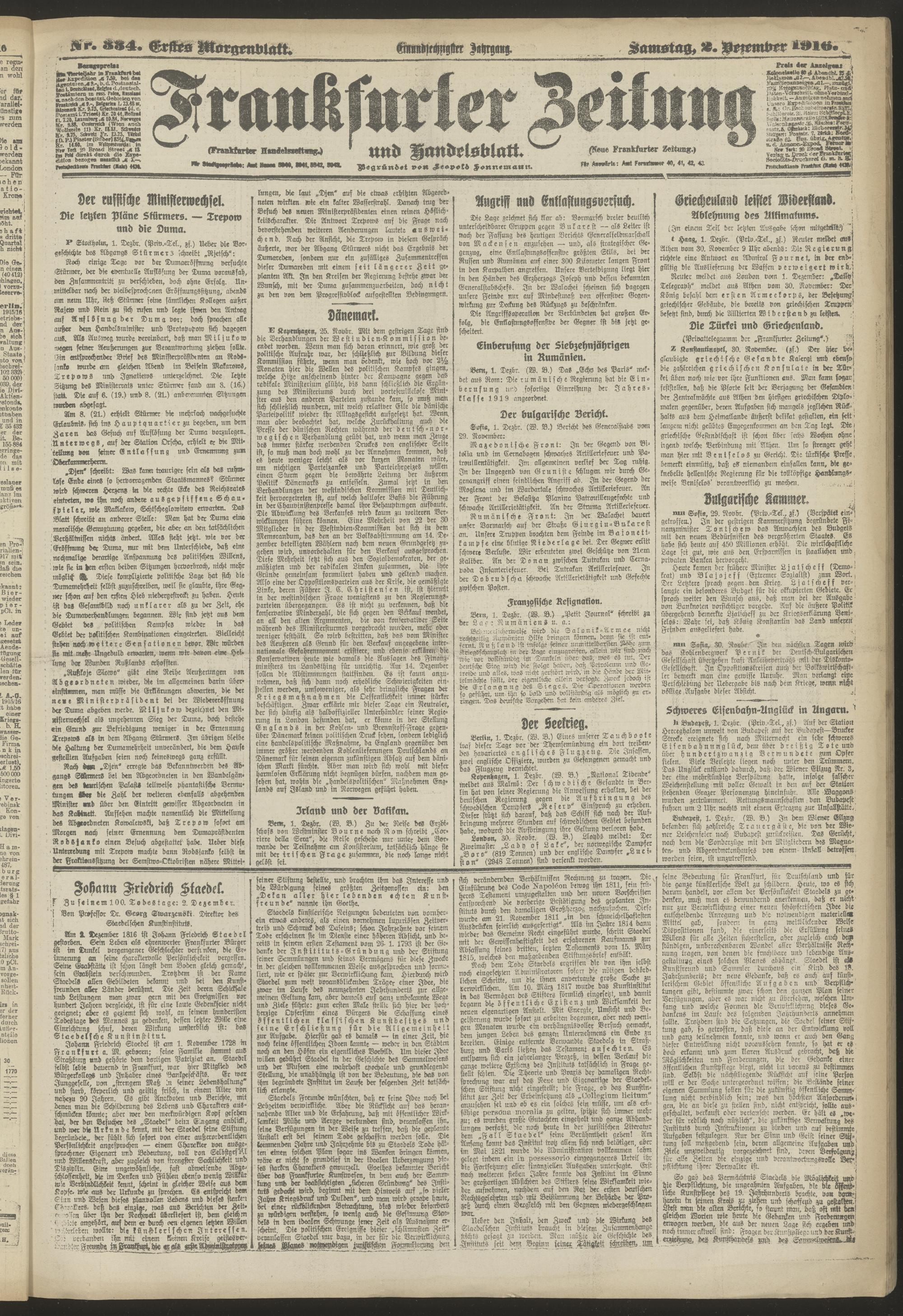 02.12.1916 = Nr. 334. Erstes Morgenblatt