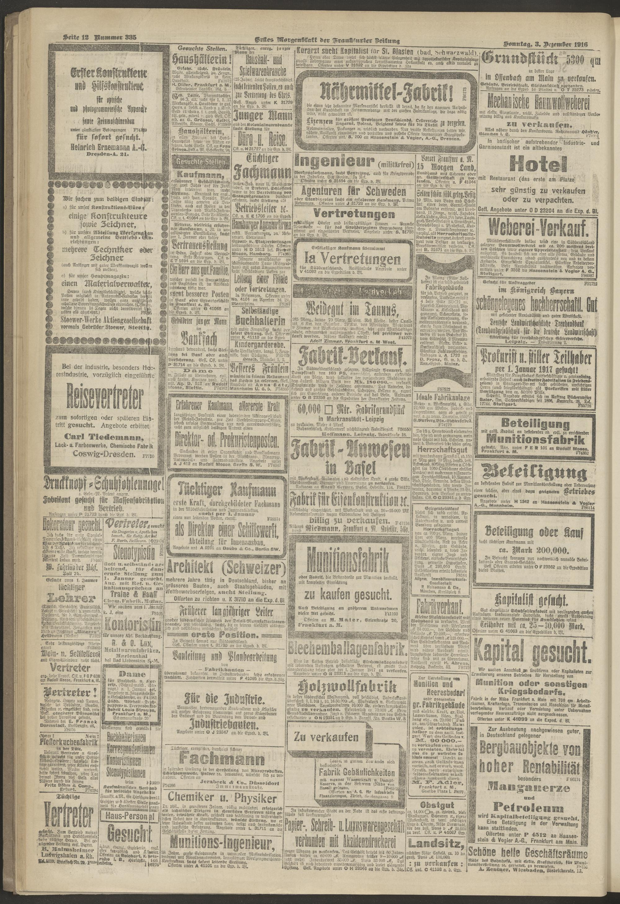 03.12.1916 = Nr. 335. Erstes Morgenblatt