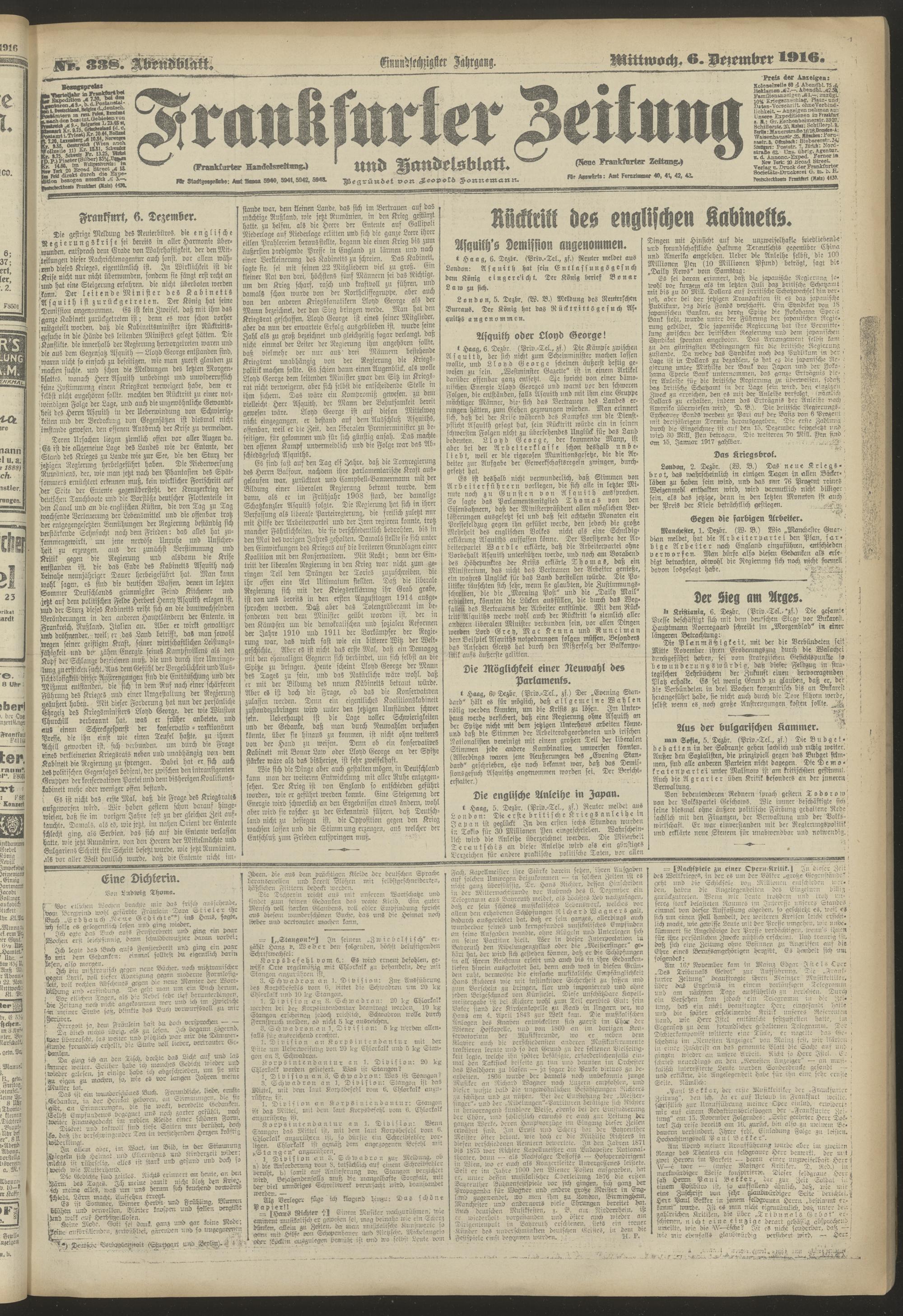 06.12.1916 = Nr. 338. Abendblatt