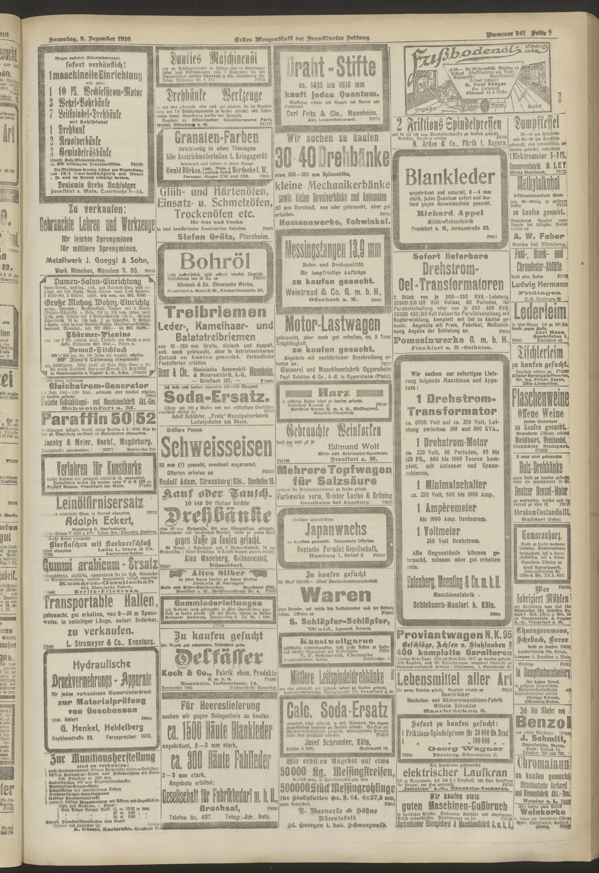 09.12.1916 = Nr. 341. Erstes Morgenblatt