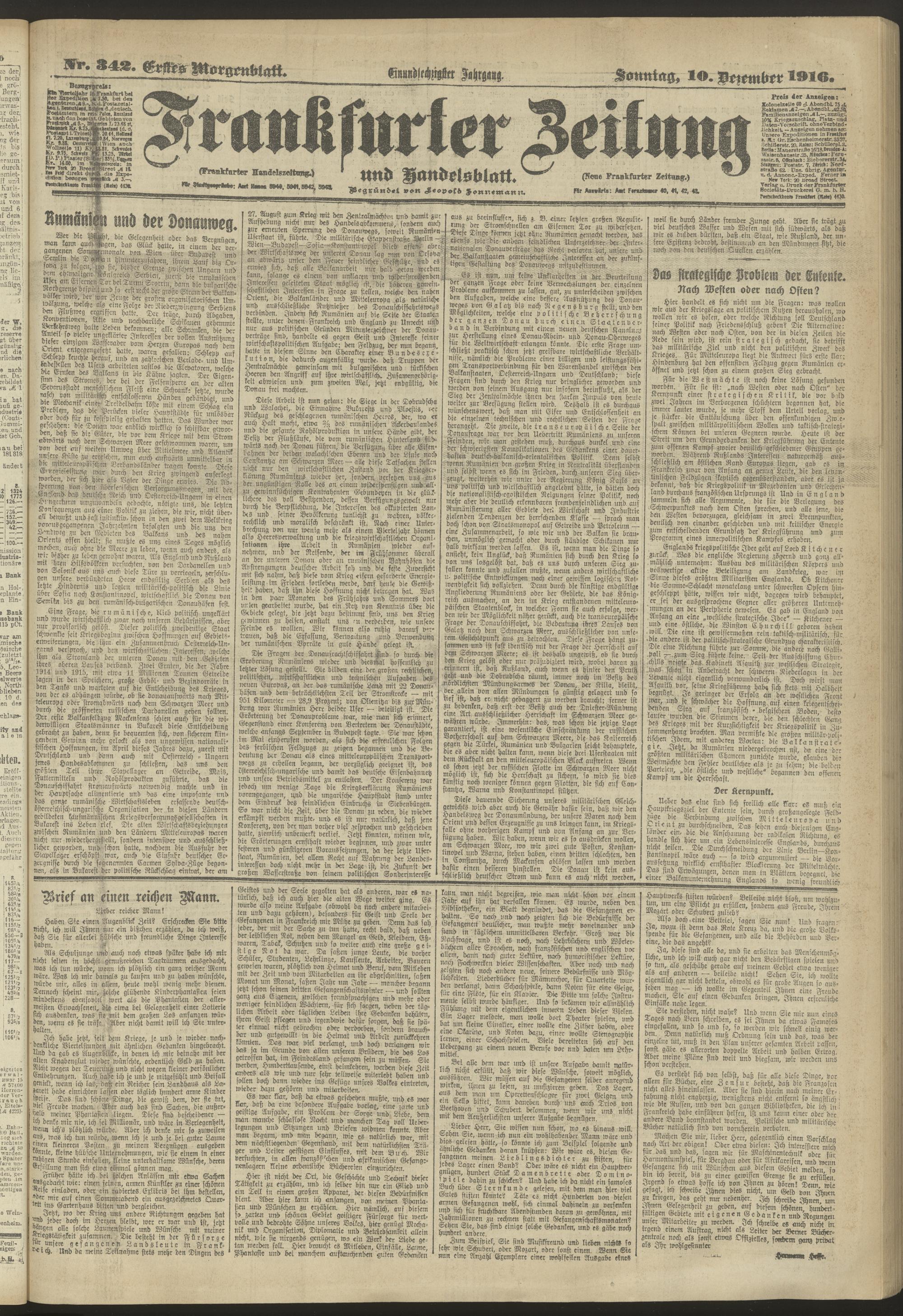 10.12.1916 = Nr. 342. Erstes Morgenblatt