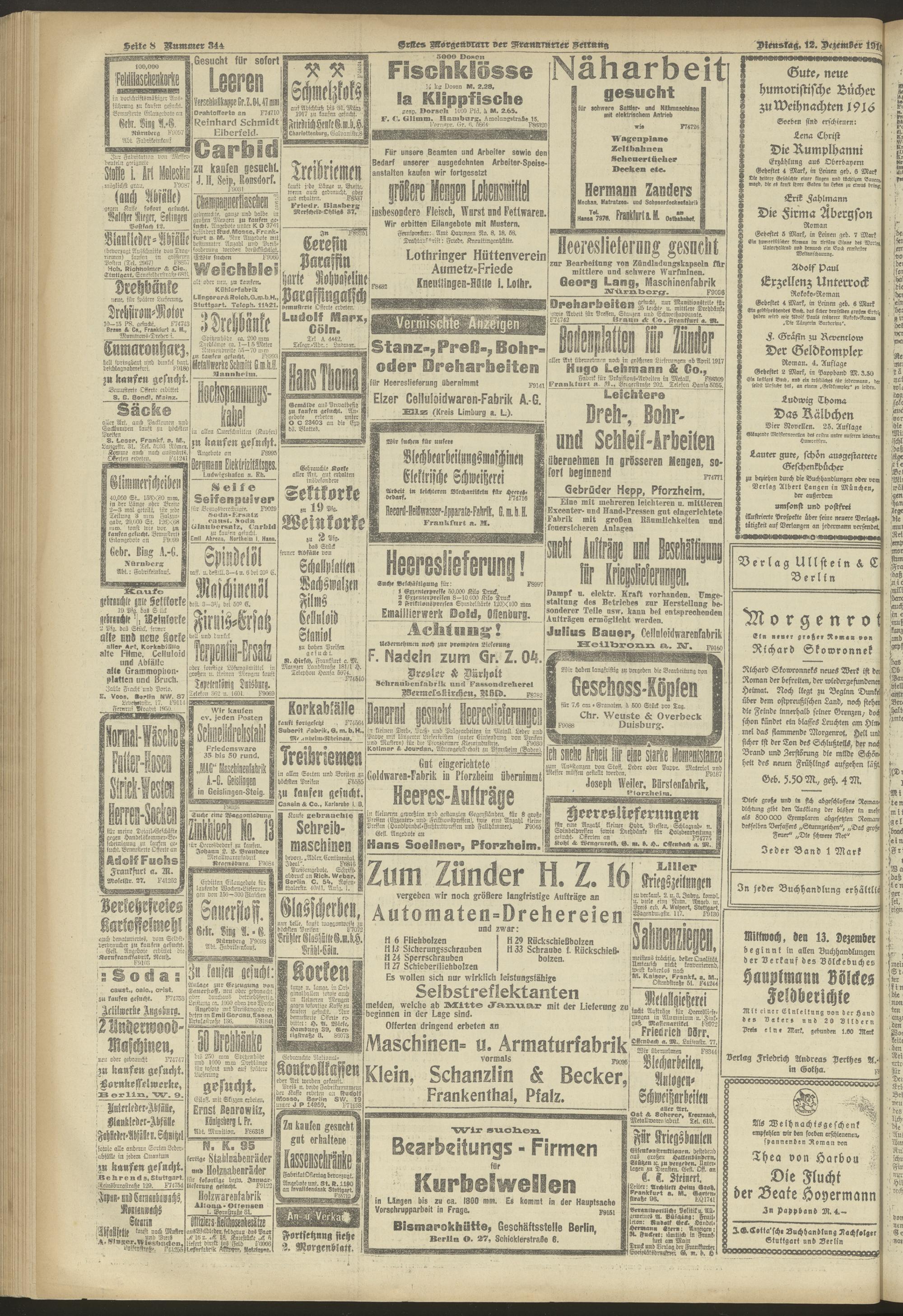 12.12.1916 = Nr. 344. Erstes Morgenblatt