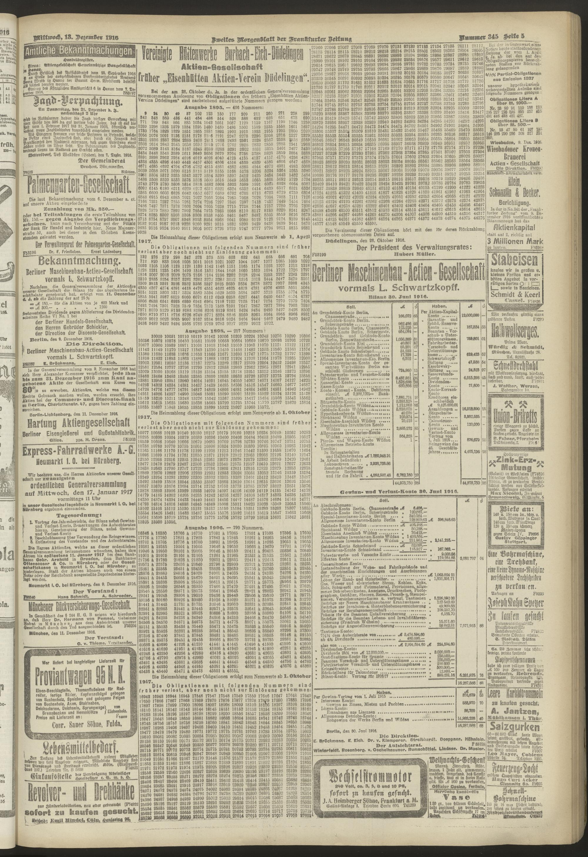 13.12.1916 = Nr. 345. Zweites Morgenblatt
