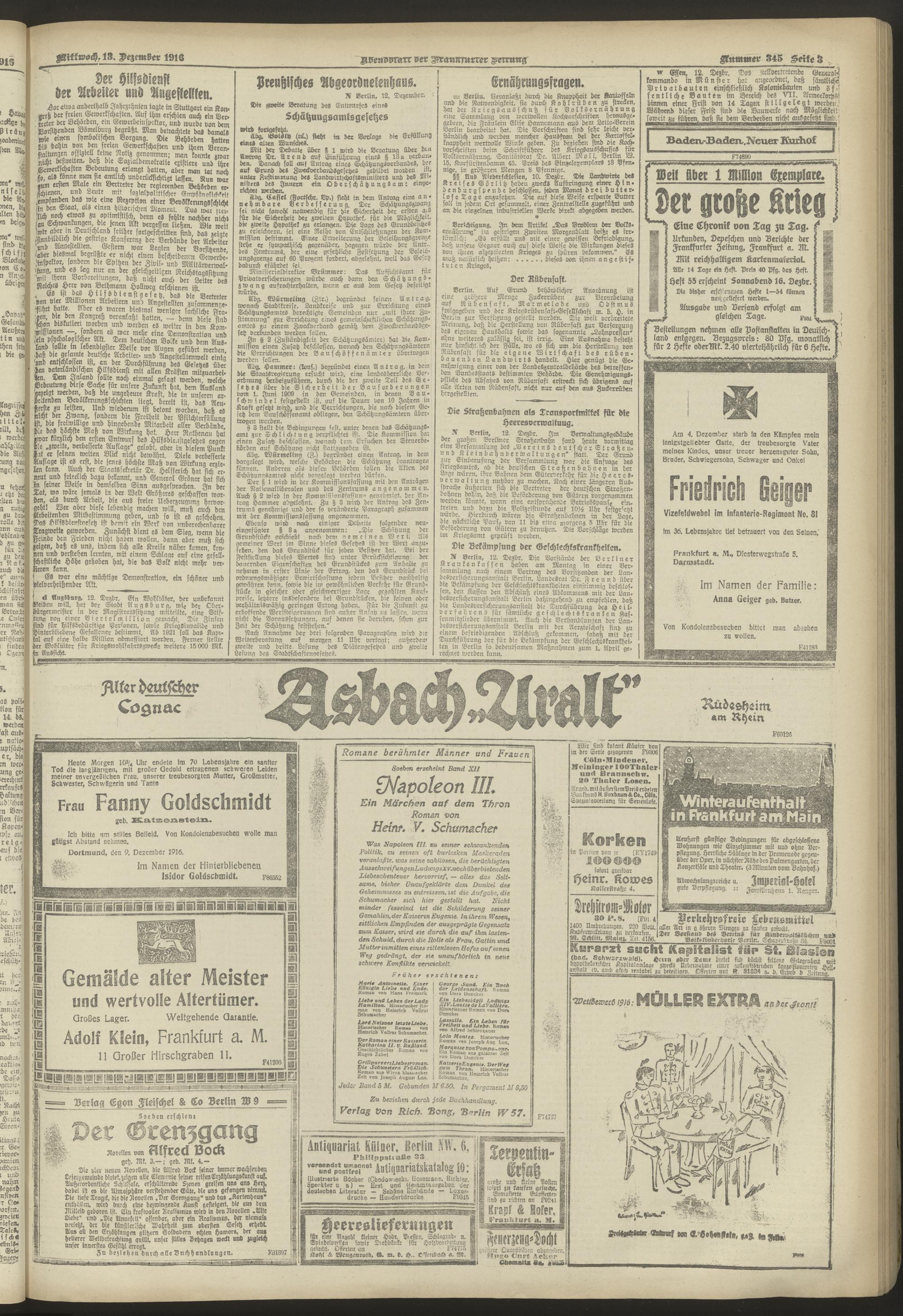 13.12.1916 = Nr. 345. Abendblatt