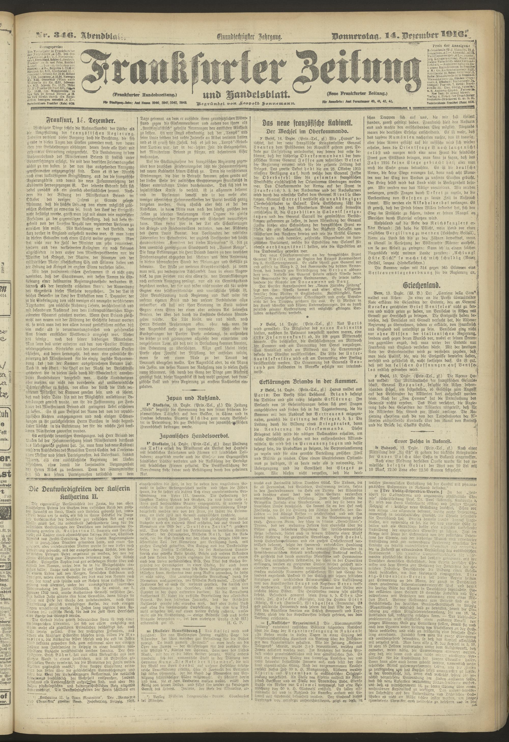 14.12.1916 = Nr. 346. Abendblatt
