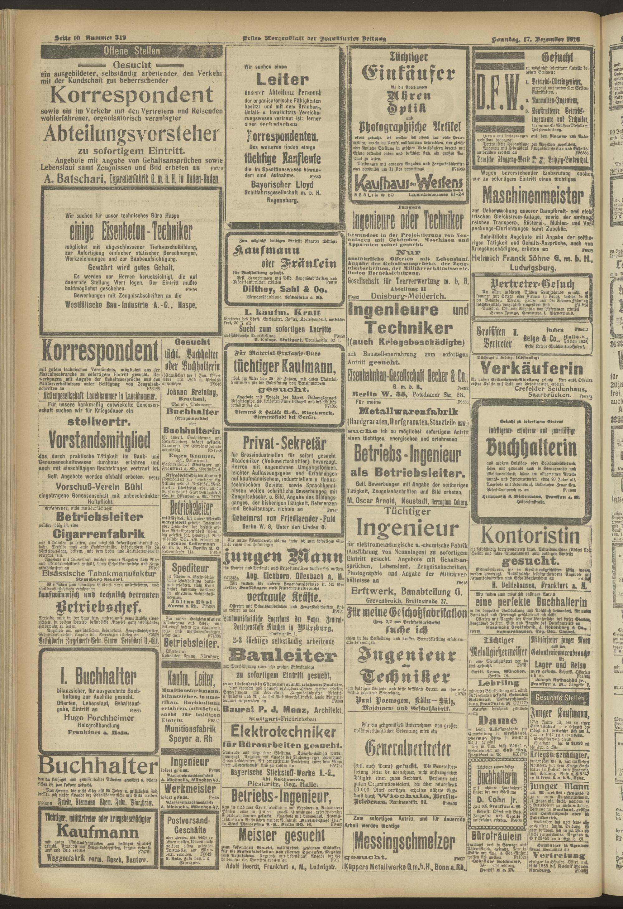 17.12.1916 = Nr. 349. Erstes Morgenblatt