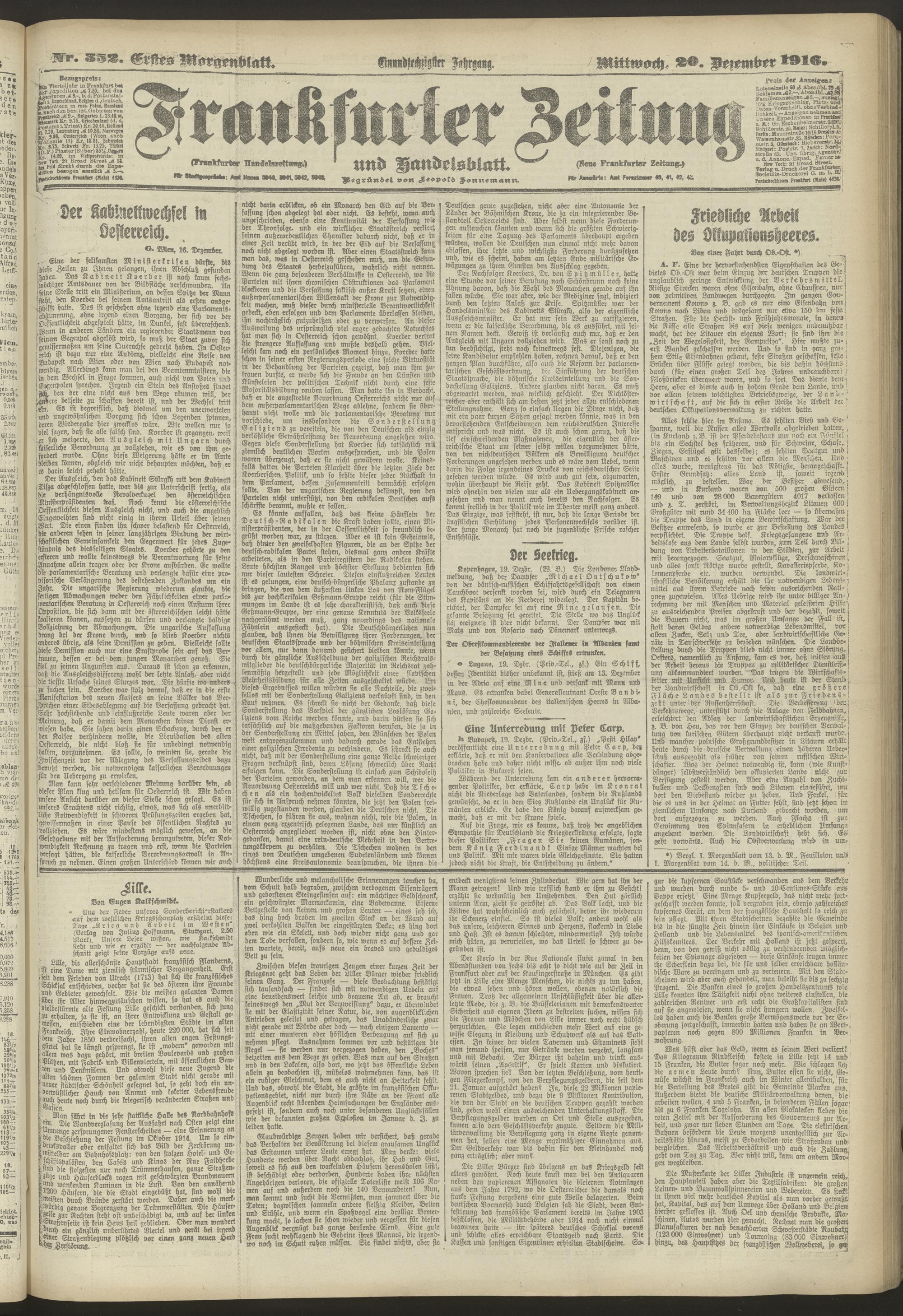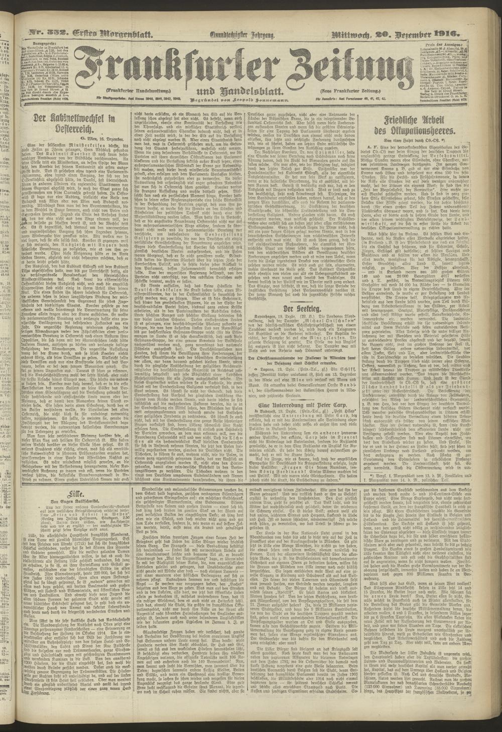 20.12.1916 = Nr. 352. Erstes Morgenblatt