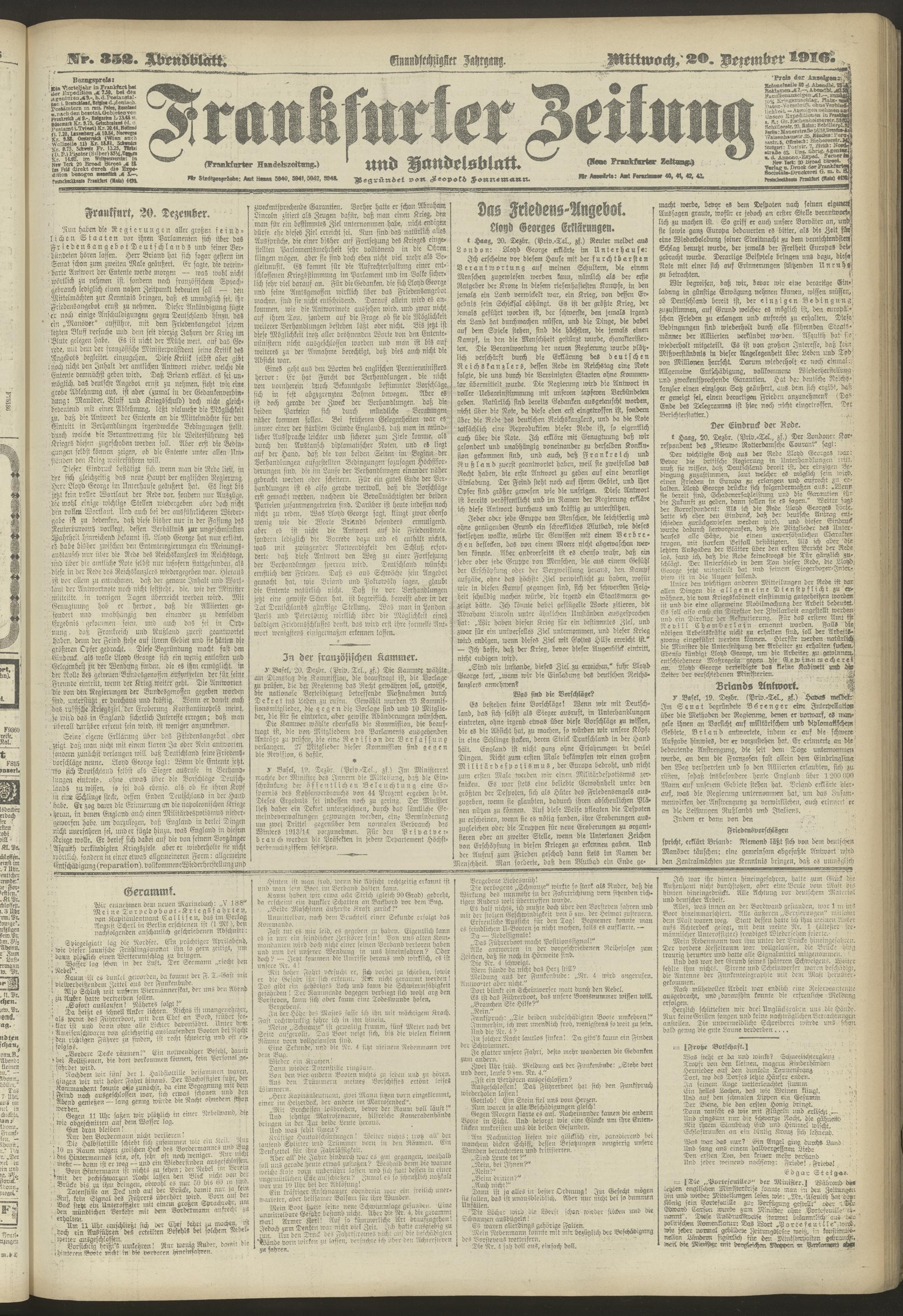 20.12.1916 = Nr. 352. Abendblatt