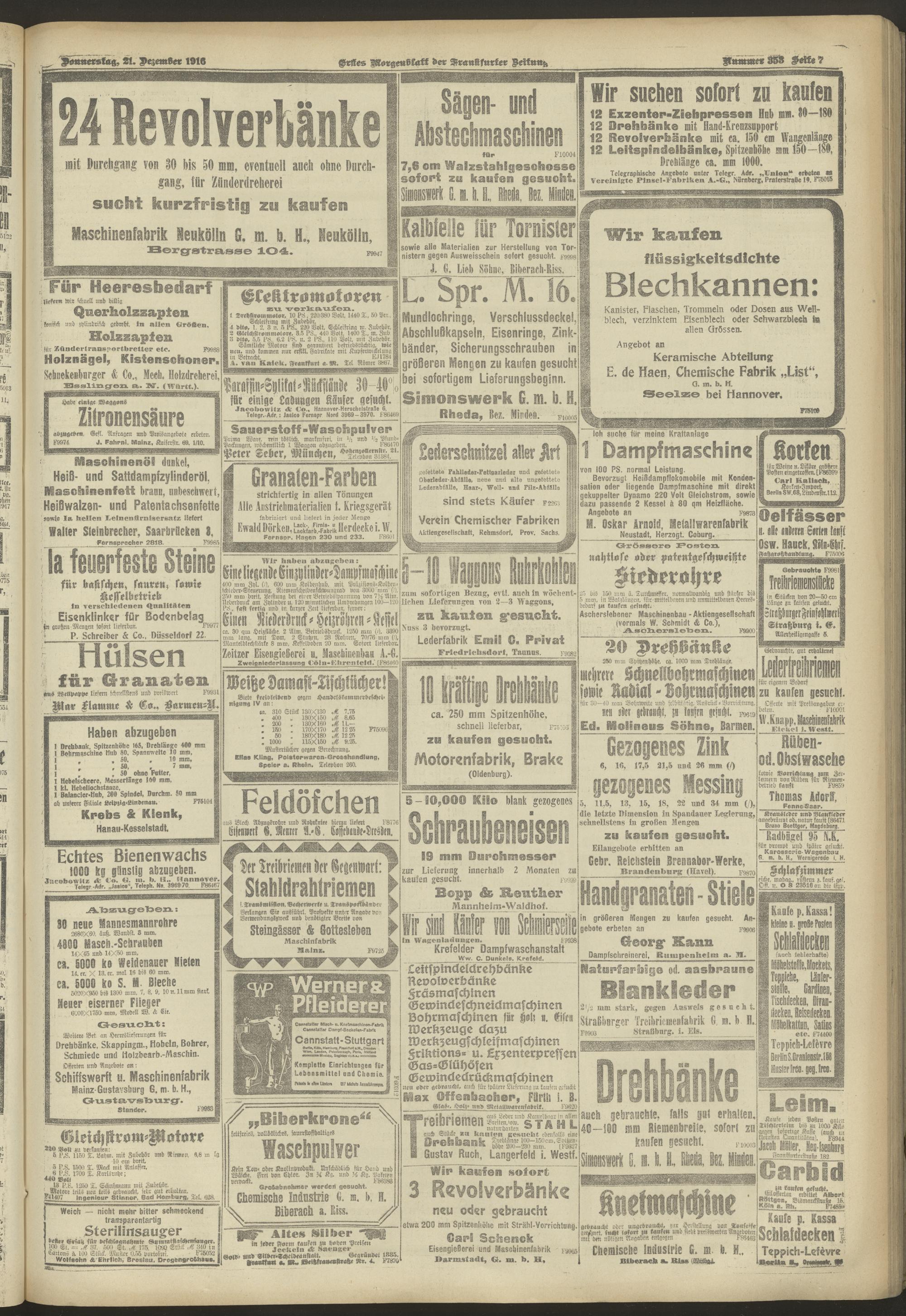 21.12.1916 = Nr. 353. Erstes Morgenblatt
