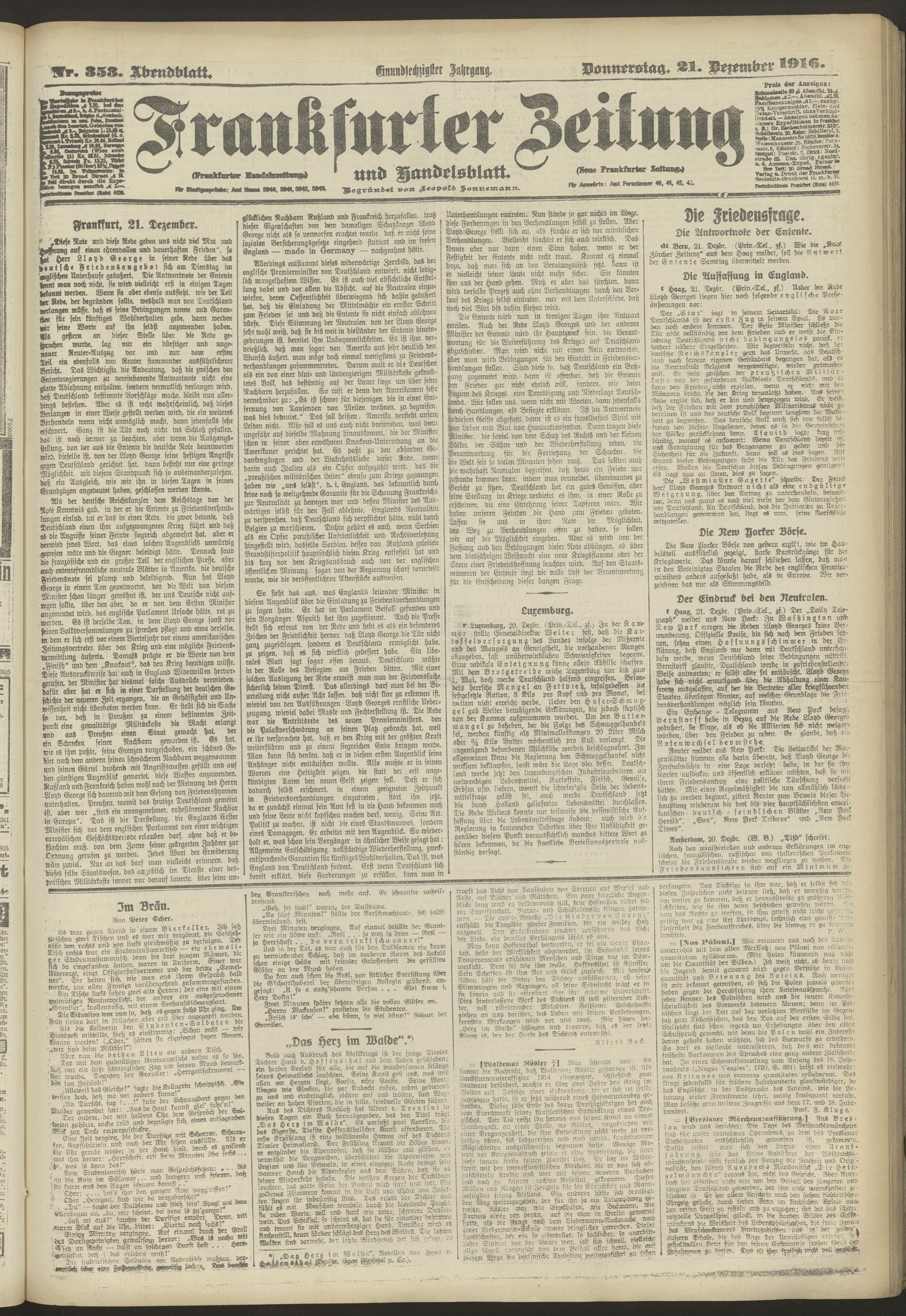 21.12.1916 = Nr. 353. Abendblatt