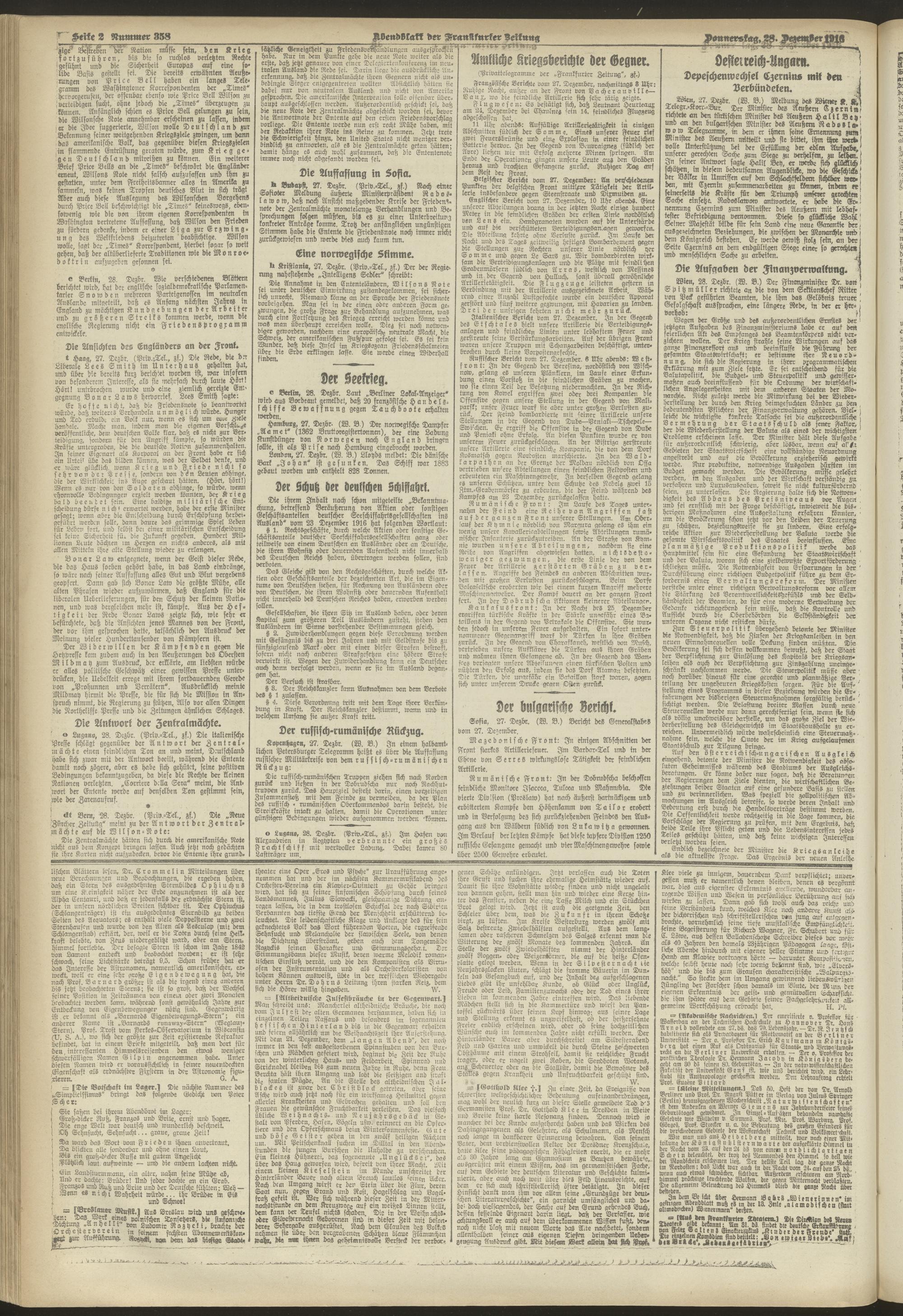28.12.1916 = Nr. 358. Abendblatt