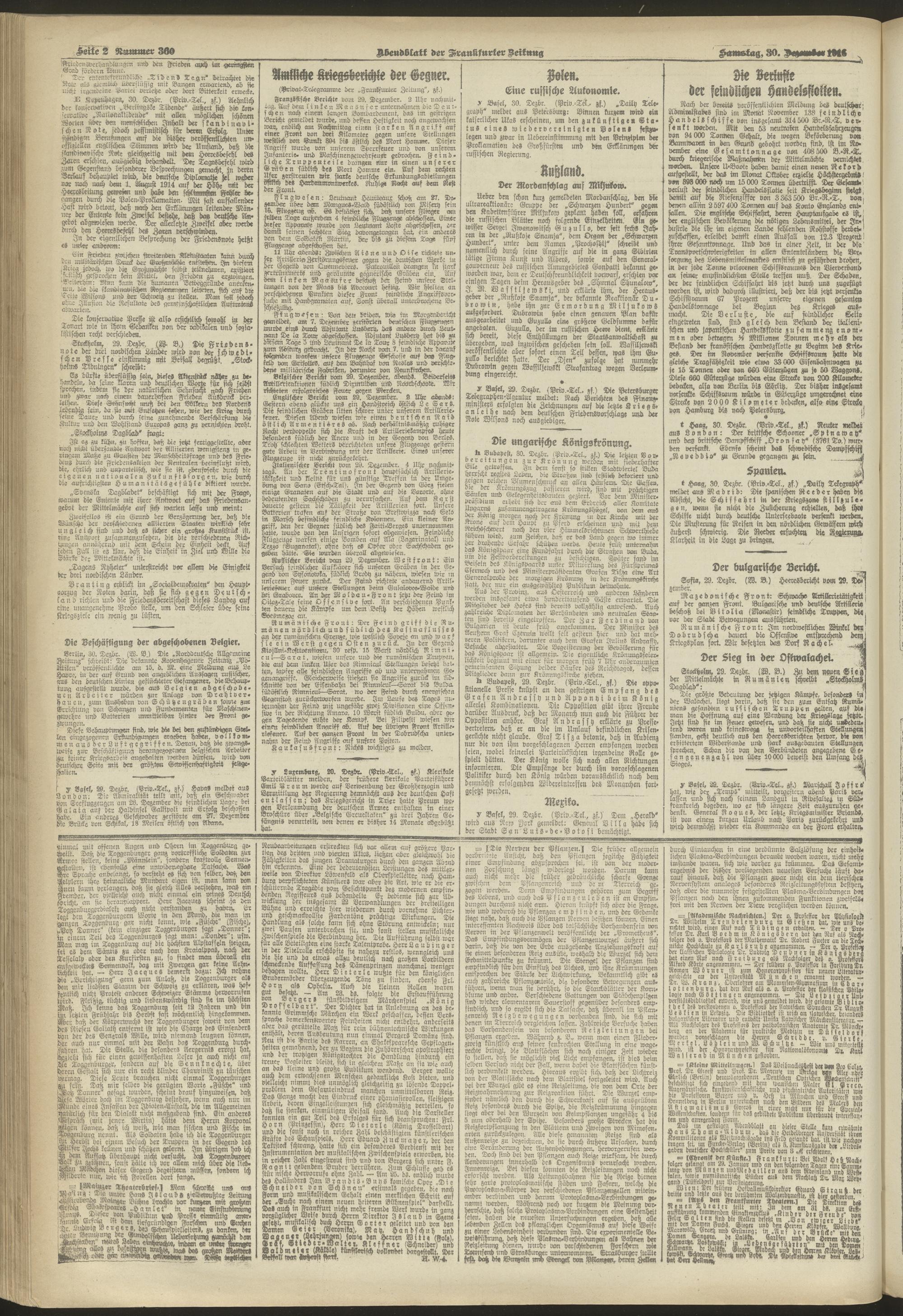 30.12.1916 = Nr. 360. Abendblatt