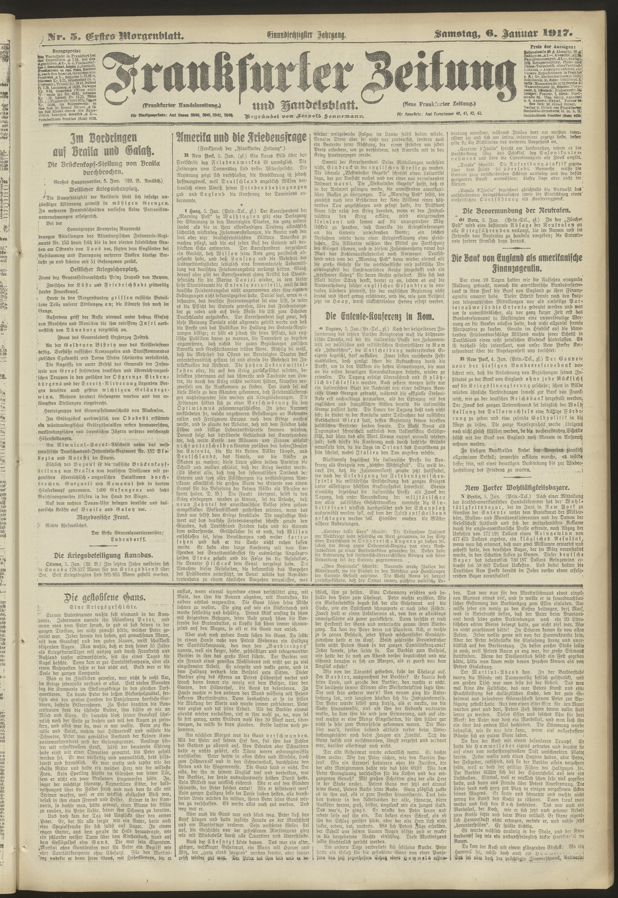 06.01.1917 = Nr. 5. Erstes Morgenblatt