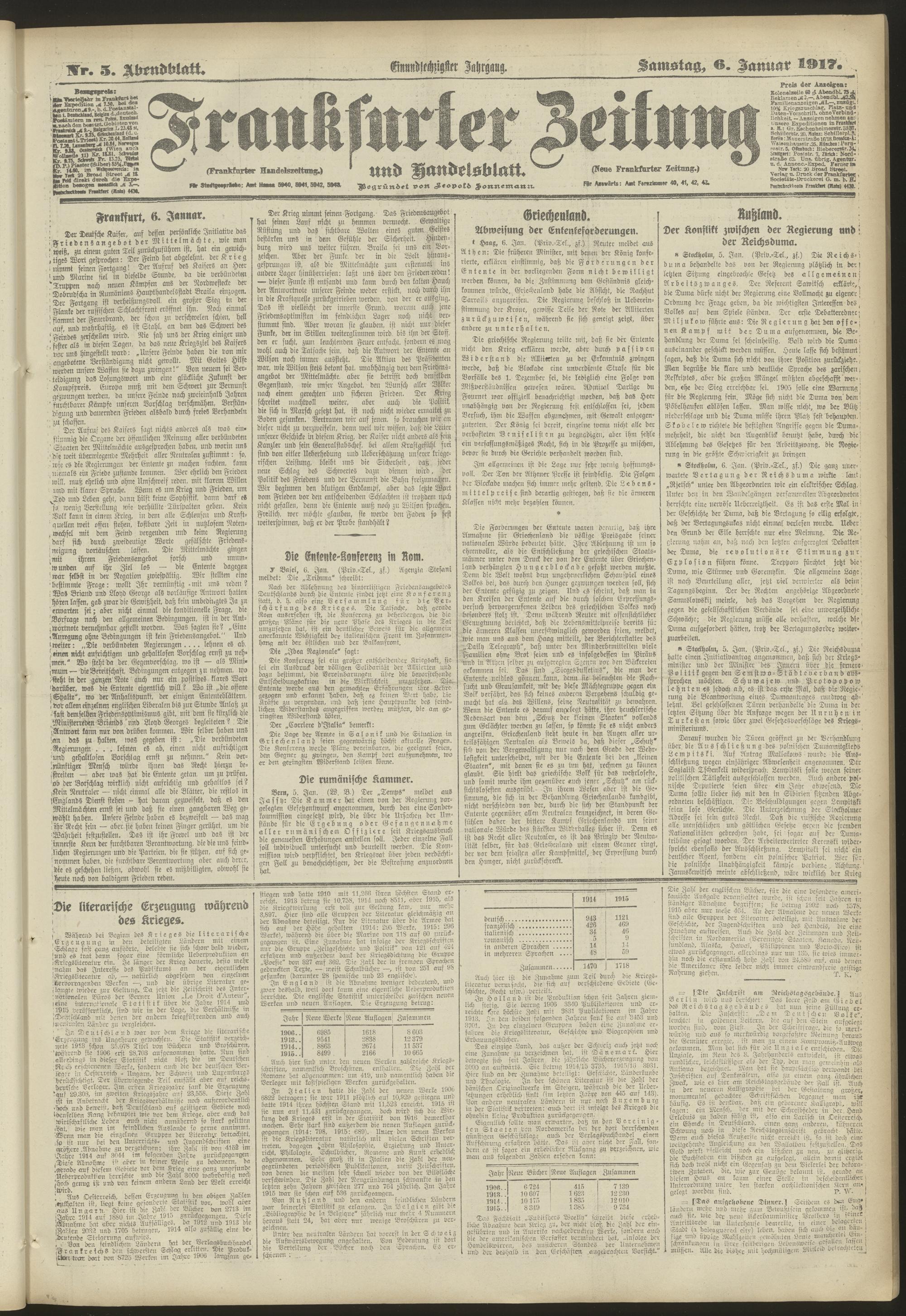06.01.1917 = Nr. 5. Abendblatt