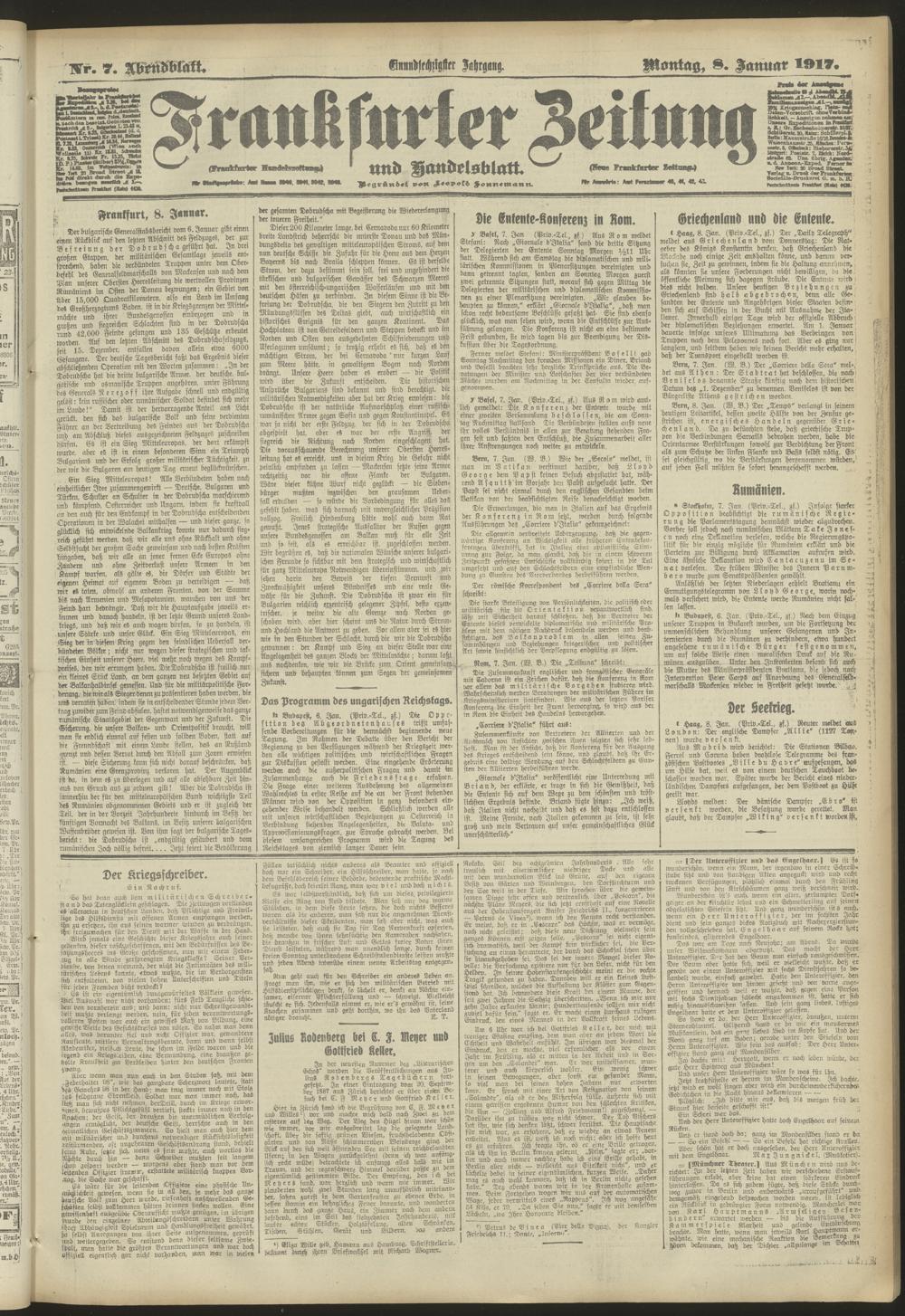 08.01.1917 = Nr. 7. Abendblatt