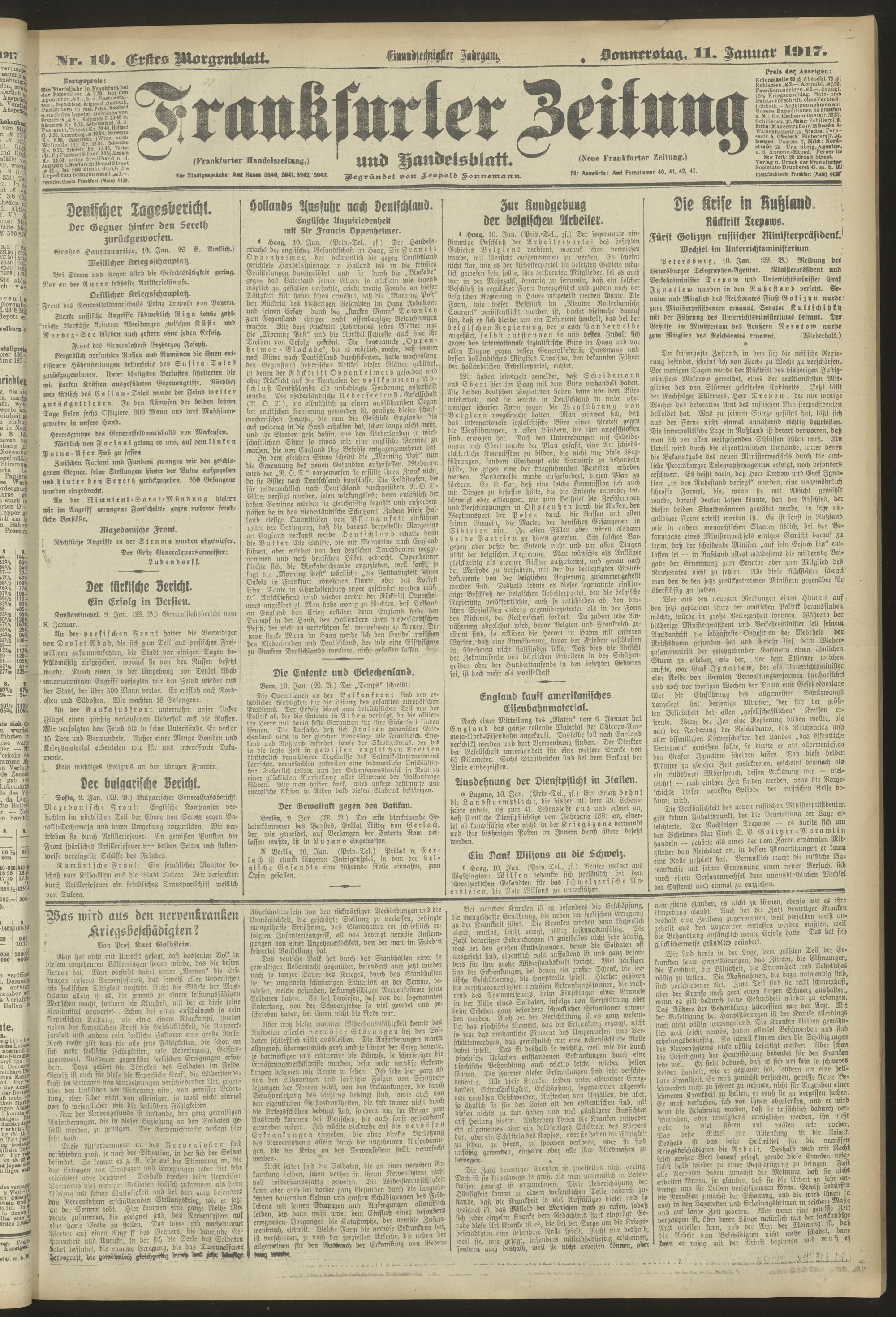 11.01.1917 = Nr. 10. Erstes Morgenblatt