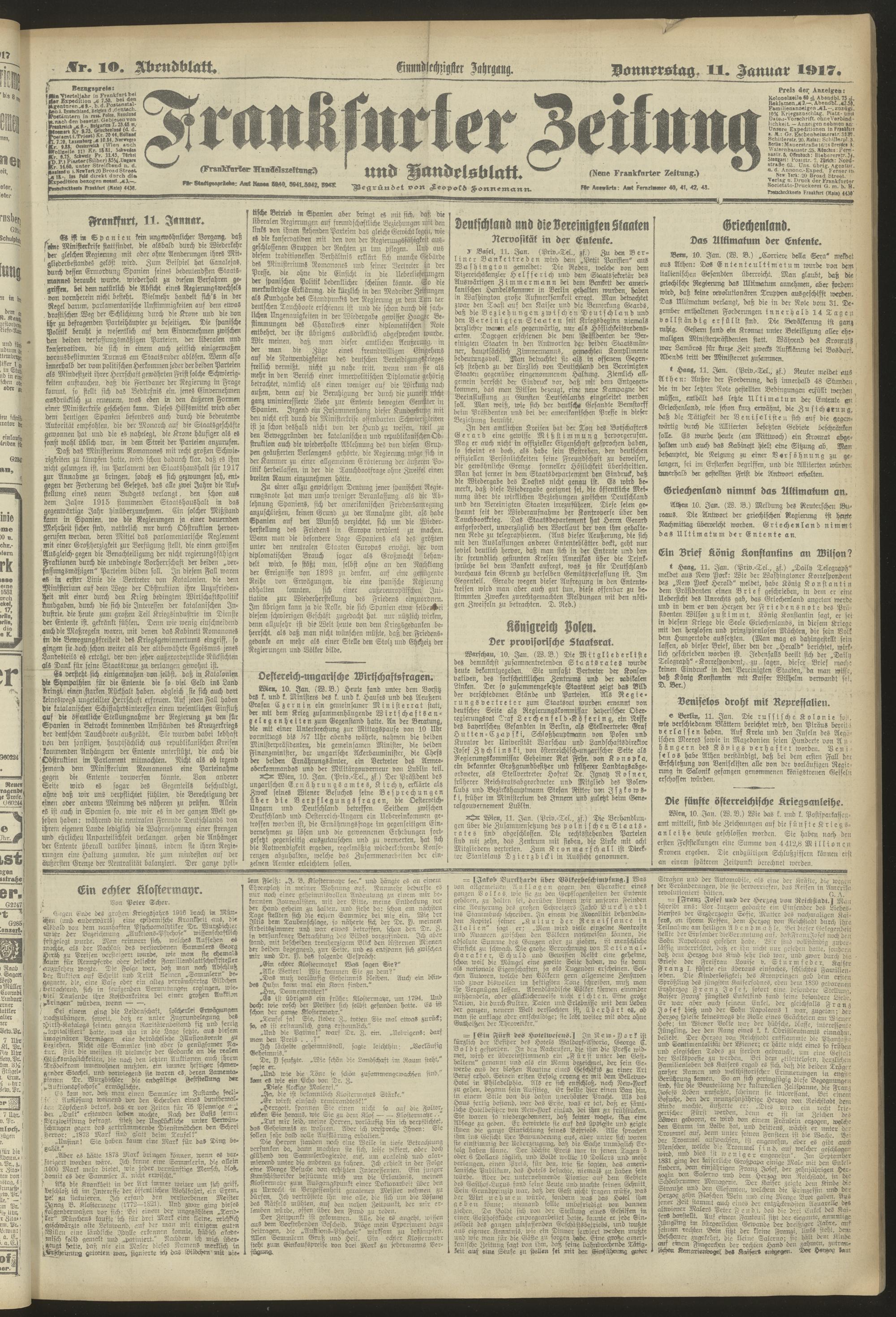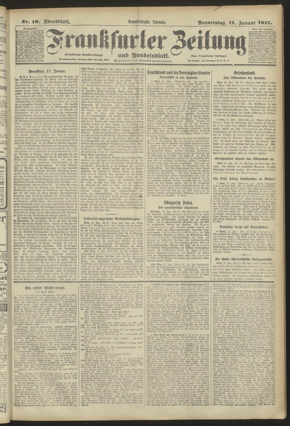 11.01.1917 = Nr. 10. Abendblatt
