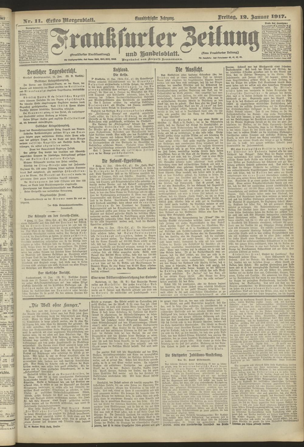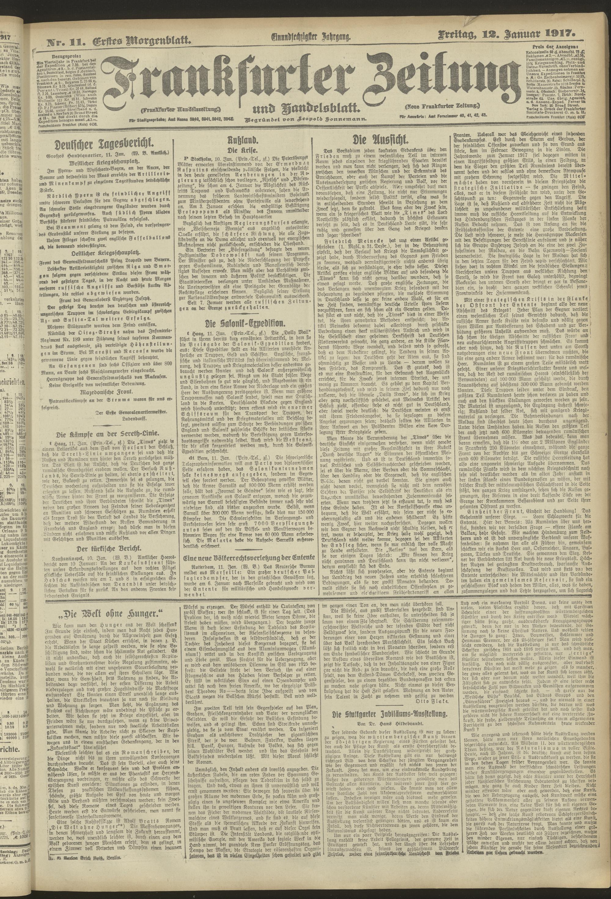 12.01.1917 = Nr. 11. Erstes Morgenblatt