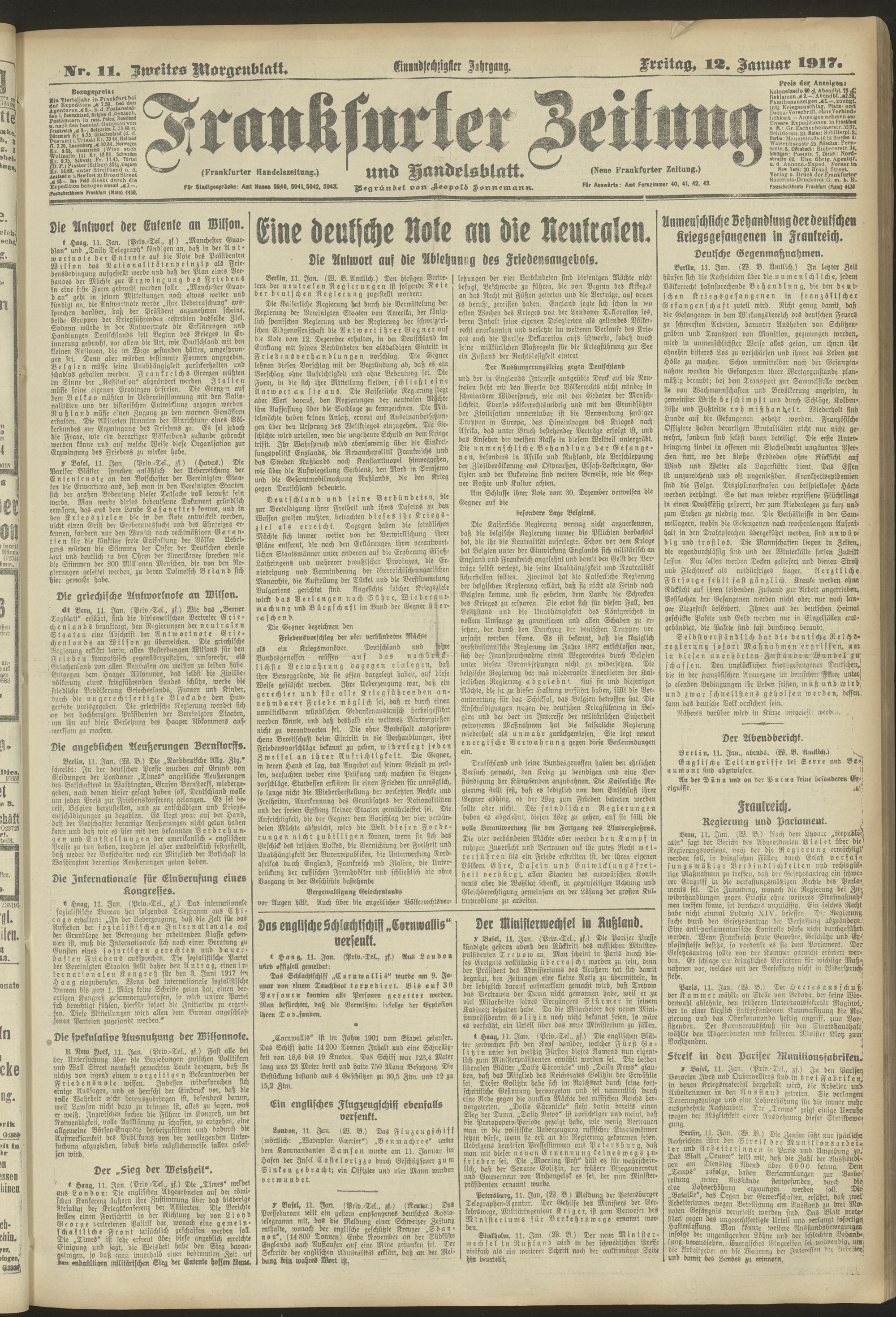12.01.1917 = Nr. 11. Zweites Morgenblatt