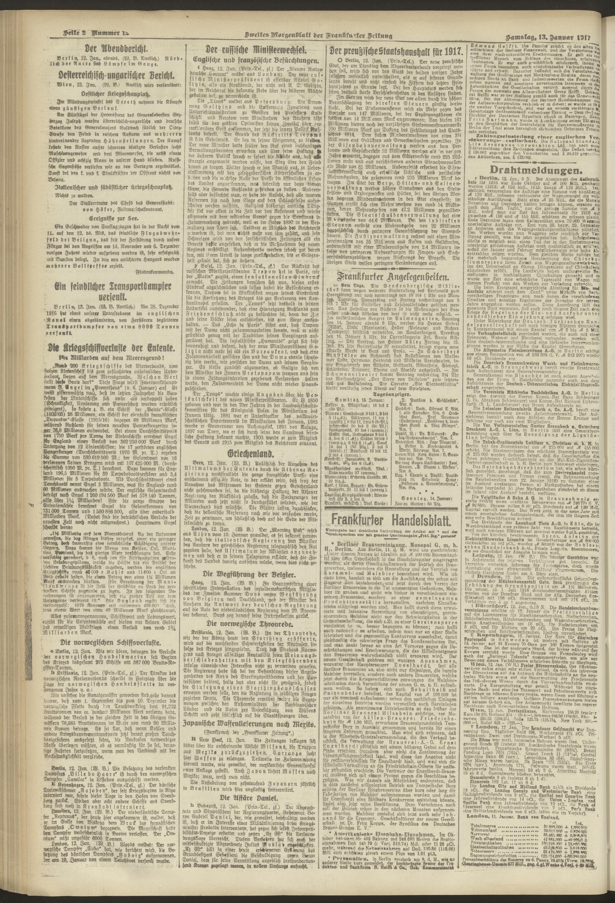 13.01.1917 = Nr. 12. Zweites Morgenblatt