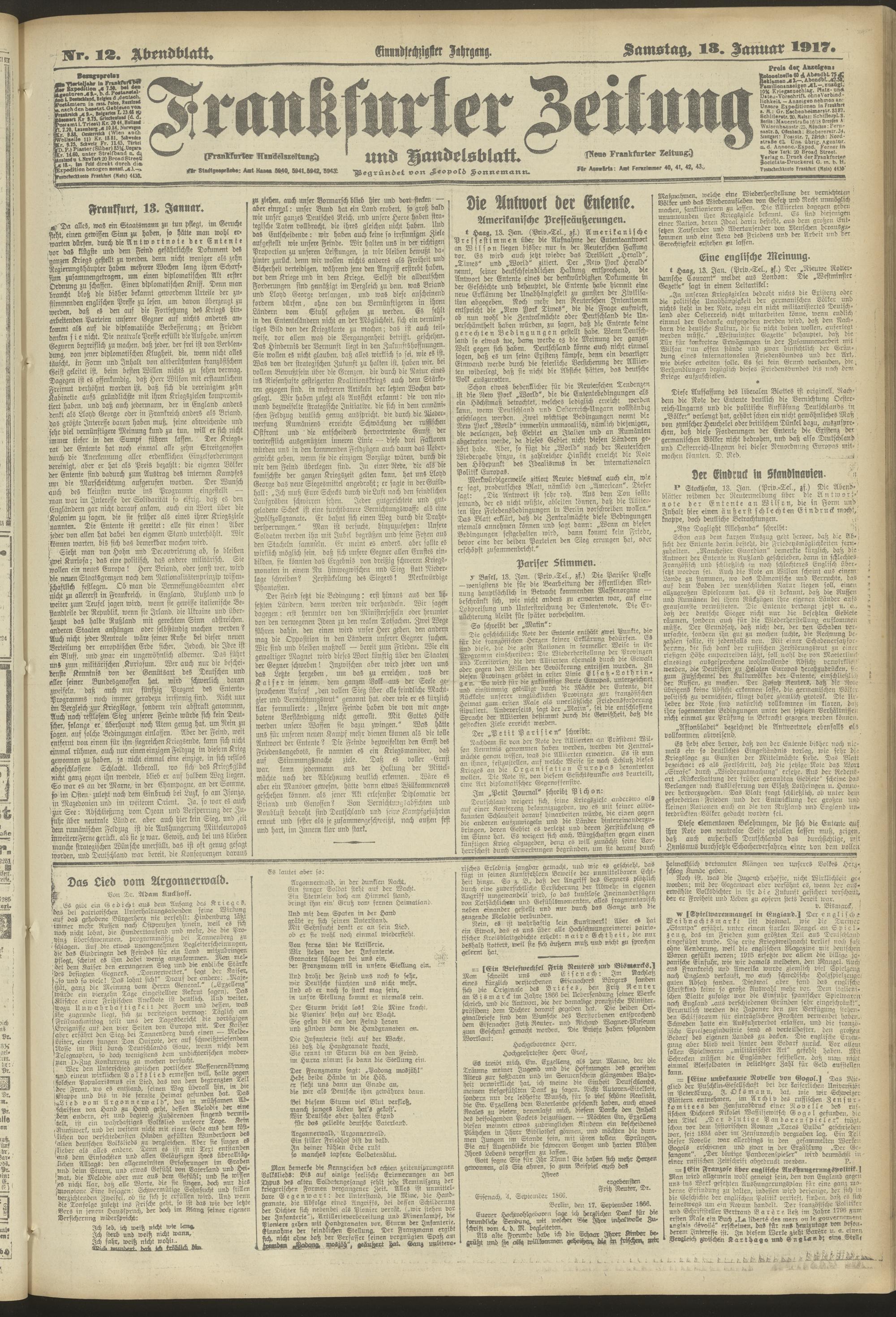 13.01.1917 = Nr. 12. Abendblatt