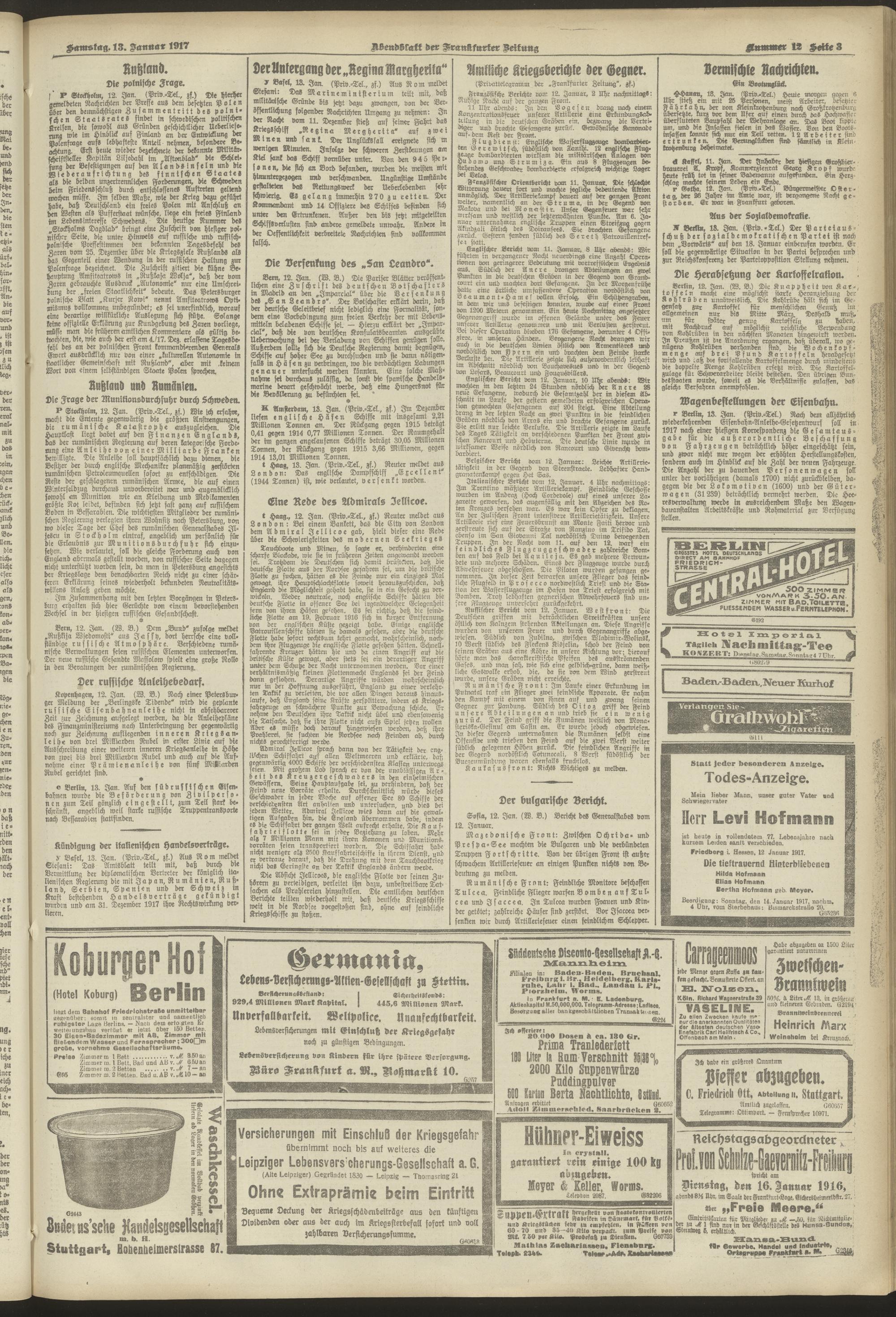13.01.1917 = Nr. 12. Abendblatt