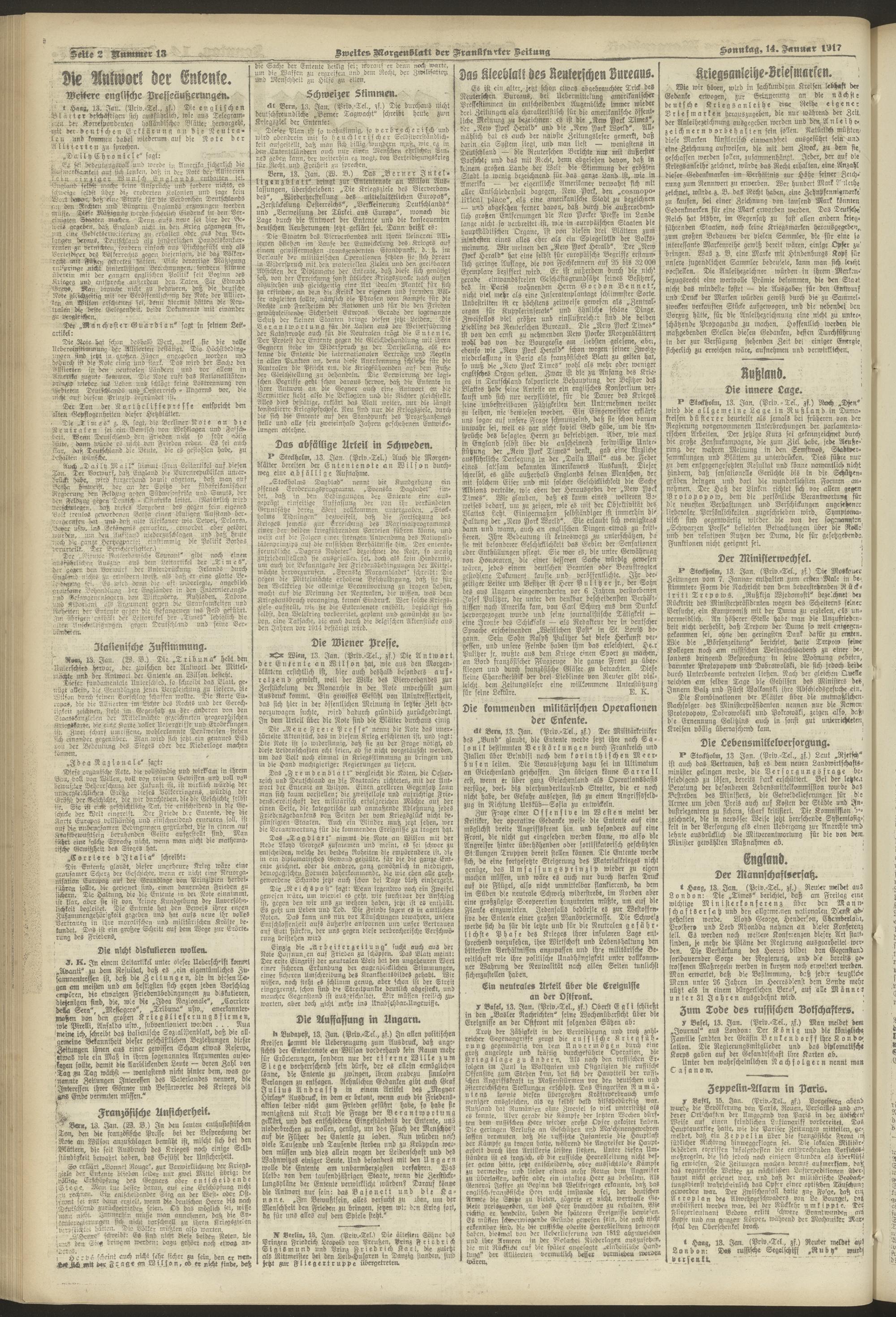 14.01.1917 = Nr. 13. Zweites Morgenblatt